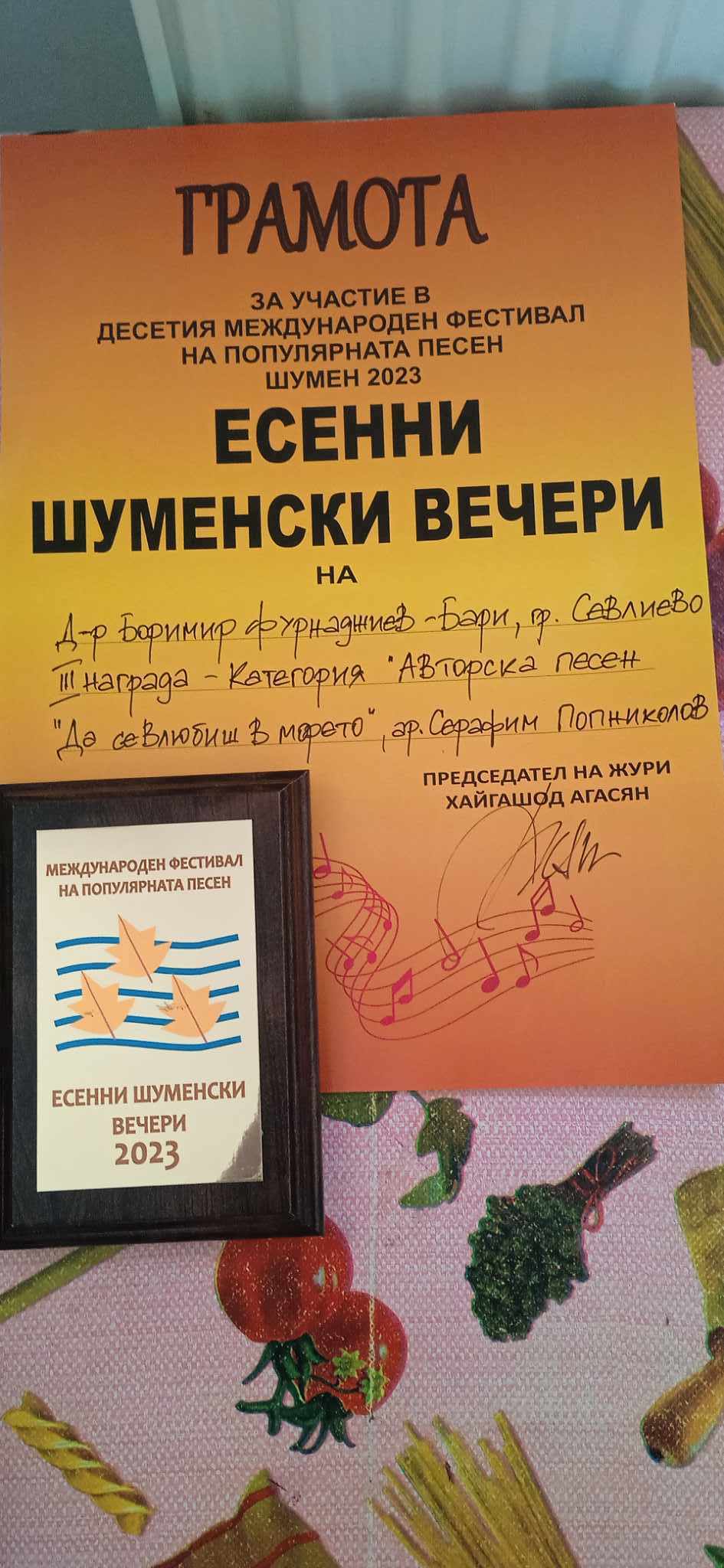 Два дни по-късно на страницата на фестивала бе публикуван протоколът с призовете. Първа награда в категория „Популярни градски песни“ и трета награда за авторска песен.