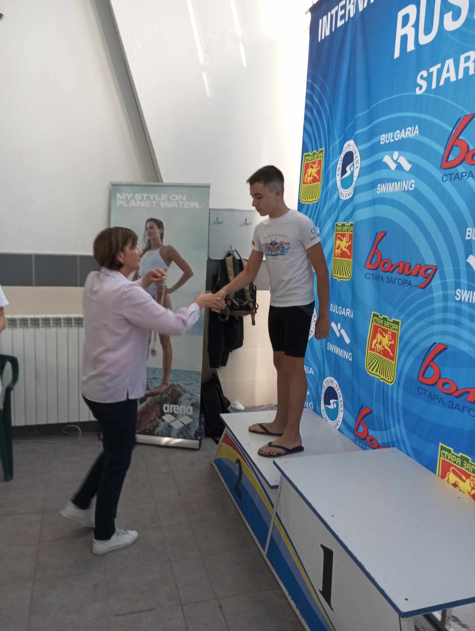 Със злато се завърна от Международния турнир по плуване в Стара Загора Християн Митев. Състезателят на севлиевския клуб „Викинг“ и още трима негови съотборници участваха в 12-ото издание на силната надпревара в памет на Руси Русев. В състезанието се включиха 213 плувци от 26 клуба. Турнирът бе открит от Таня Богомилова, олимпийската шампионка на 100 м бруст от Сеул’88 и дългогодишен генерален секретар на БФПС.