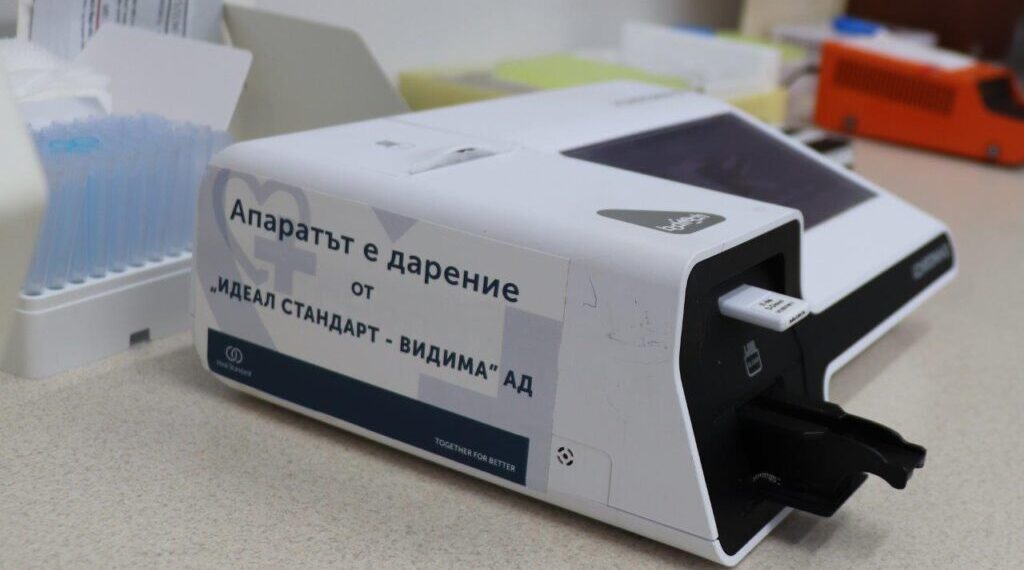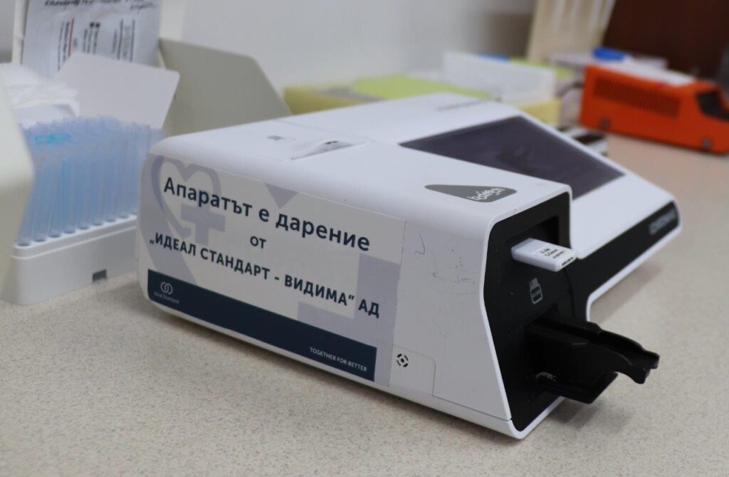 Д-р Станчев обясни подробно за всеки един от апаратите, закупени от компанията, които са от изключителна полза за навременната диагностика на пациентите и провеждането на пълноценно лечение. „Огромната необходимост от съвременна надеждна апаратура възникна в Ковид пандемията, сподели д-р Иво Станчев и „тогава „Идеал Стандарт – Видима“ веднага реагира и закупихме първия апарат за изследване на показателя D-Dimmer, с който следим склонността към образуване на тромби в кръвта. През следващата година осъвременихме лабораторията с още един апарат за изследване на кръвна захар, закупихме и кислородни концентратори, които се използват в лечебния процес при пациенти с ниски нива на кислород в кръвта. Най-новият апарат е модерен биохимичен анализатор, който има изключително важно значение за провеждането на последващо лечение на пациенти с белодробни заболявания, тъй като правим специфични изследвания на много биохимични показатели.“