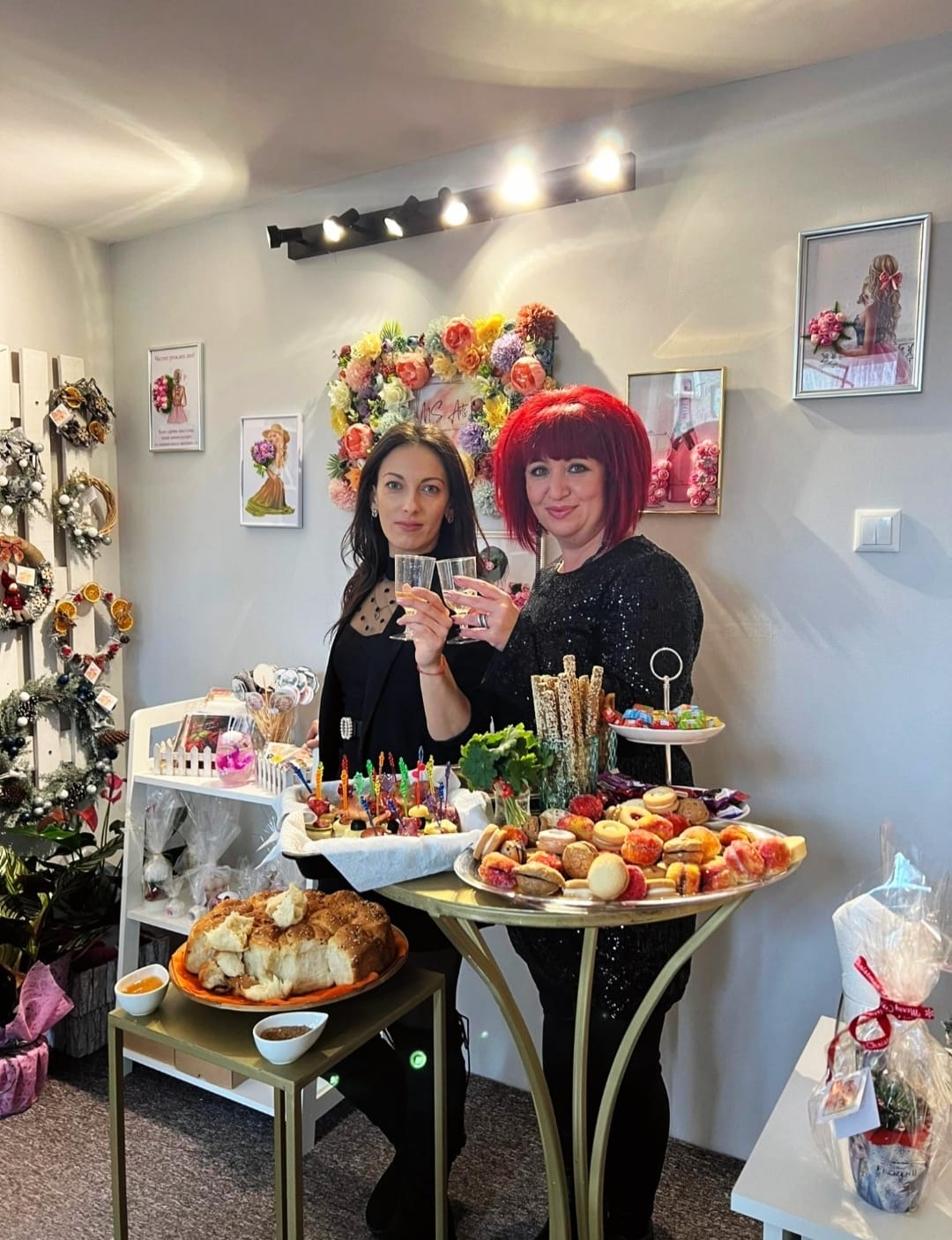 Там ще ви посрещнат две млади, усмихнати дами, които ще ви предложат ръчно изработени подаръци за малки и големи, в които са вложили сърце и душа, за да доставят настроение и красота в празничните дни.