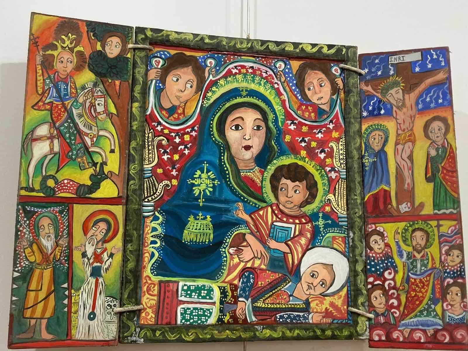 Коледна изложба на детски арт център „Видима“, съвместно със сдружение „Духовно огледало“, ще бъде открита утре – 14 декември, в Народното събрание. Акцент на изложбата ще бъдат етиопските икони, рисувани от децата от школата на художничката Снежана Велчева. Те са точни копия на първите християнски изображения в света. Идеята за тях идва от един албум с етиопски икони, който им подаряват от Музея на иконата във Франкфурт, Германия. Децата се включват доста ентусиазирано в проекта да рисуват точни копия на оригиналите, че творбите им добиват почти автентичен вид на домашен дървен иконостас.