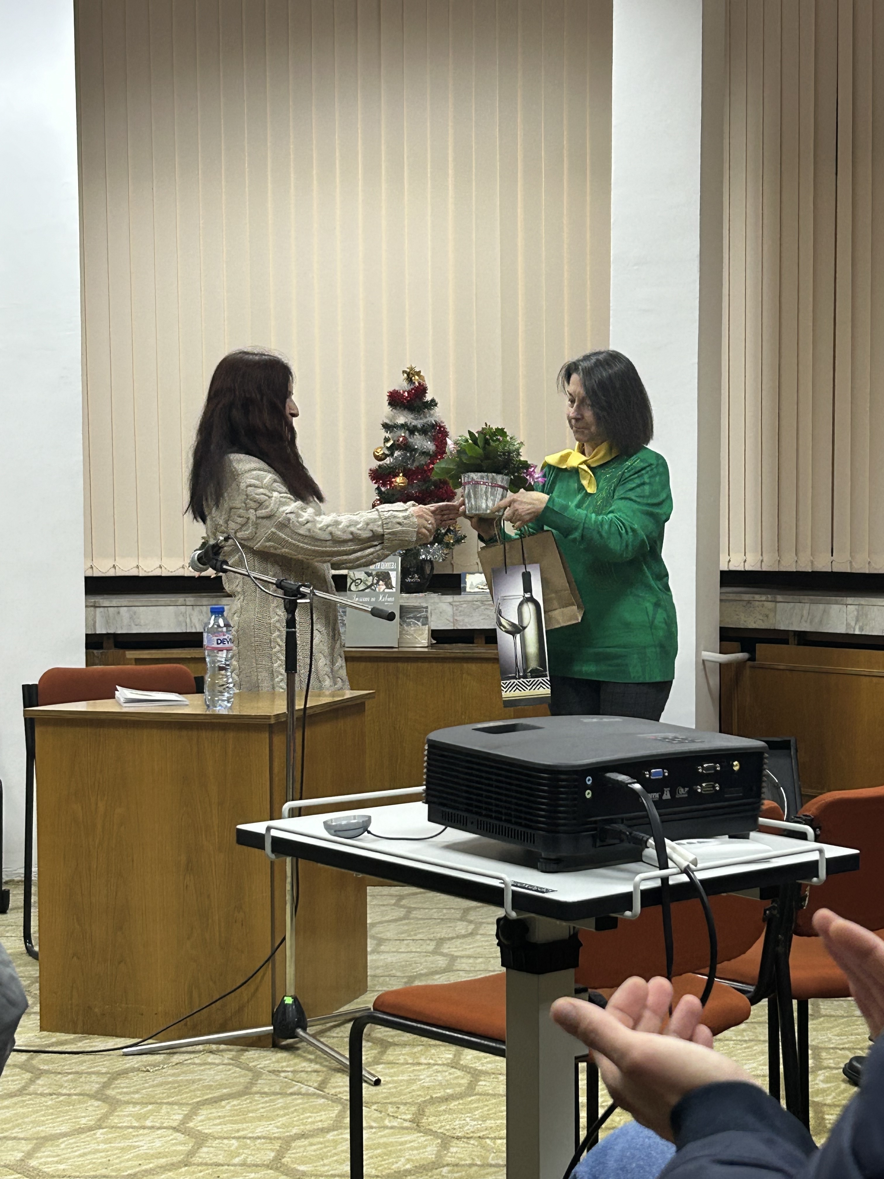 След като Петя Цонева получи подаръка си от библиотеката, тя благодари на присъстващите и всеки можеше както да разговаря с нея, така и да получи автограф.