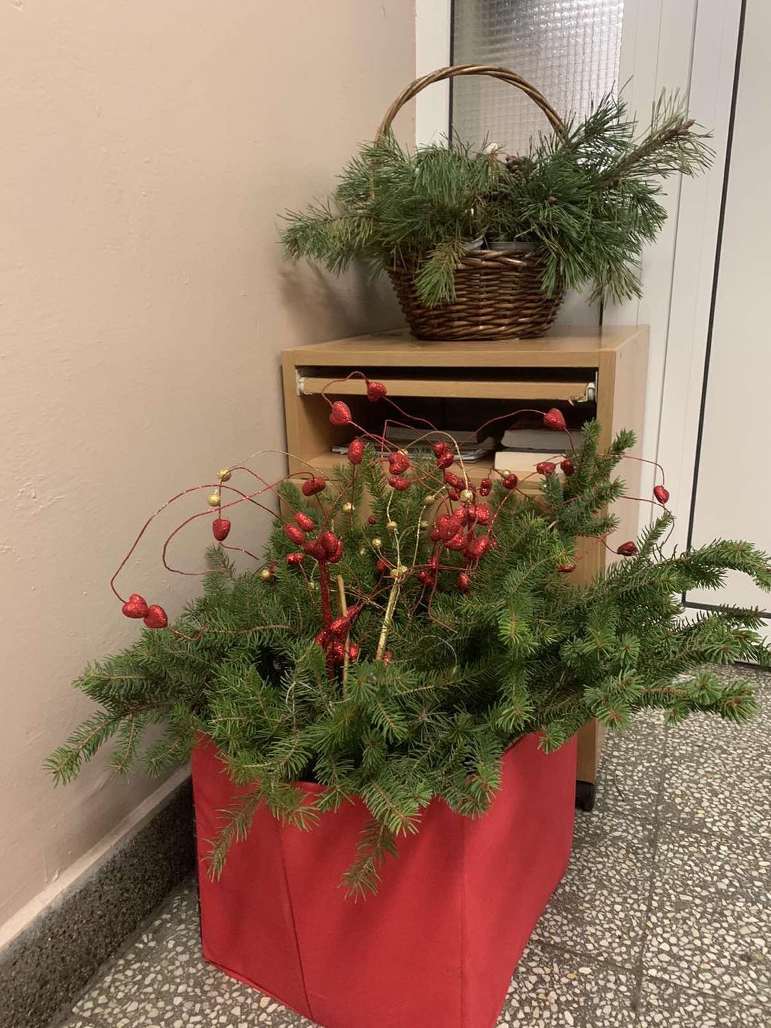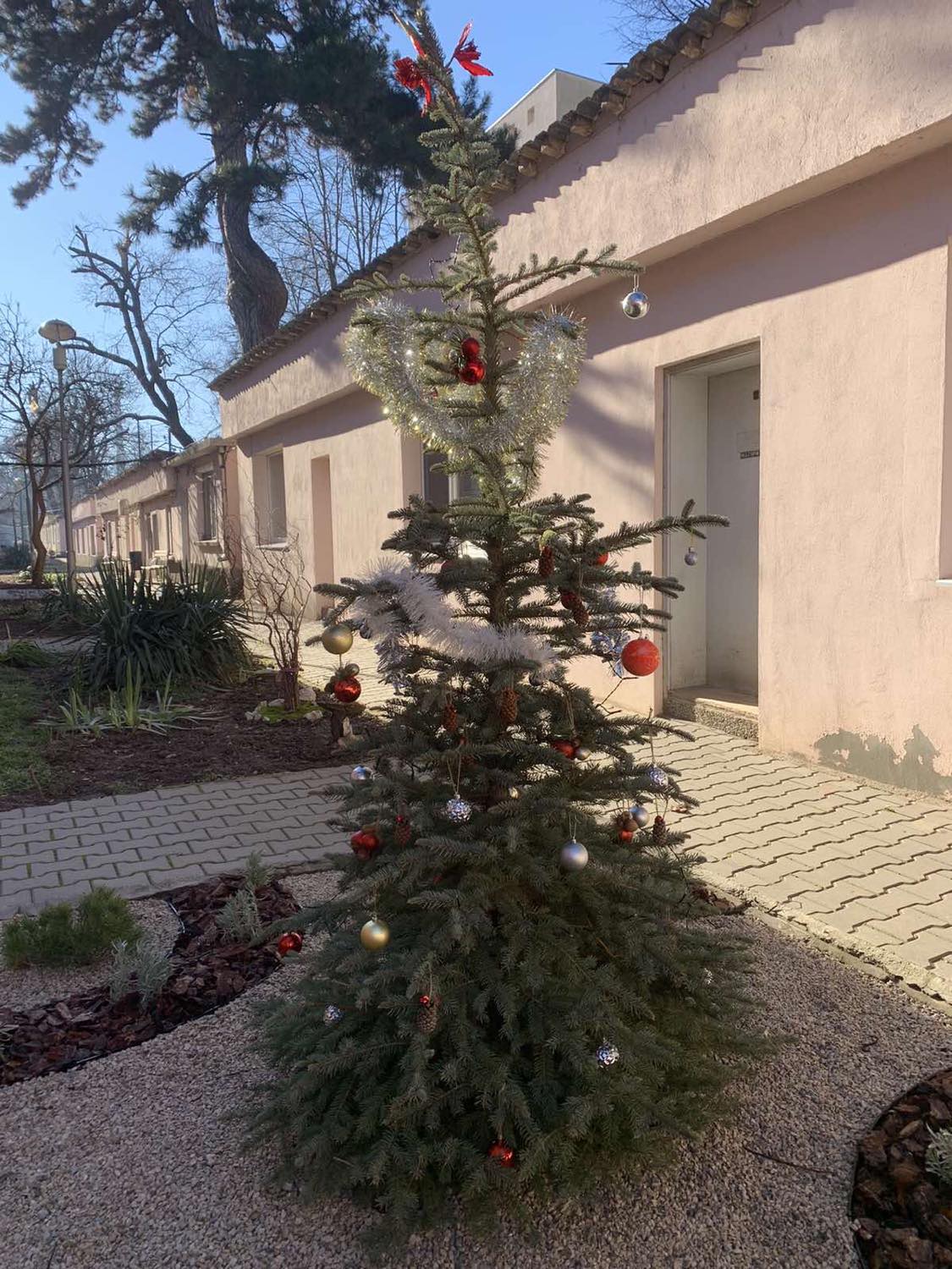 Празничното настроение в болницата се усеща навсякъде, в двора има не една, а две украсени елхички, по стените има пана от зелени клонки и коледни играчки. Същото е положението и вътре в отделенията, и в защитеното жилище, където украсата на елхите е ръчно изработена от природни материали от пациентите. Коледният дух се усеща и от десетките сувенири, които пациентите са изработили в часовете по арт терапия. Част от тях се предлагаха на благотворителен базар и вече красят домове и офиси.