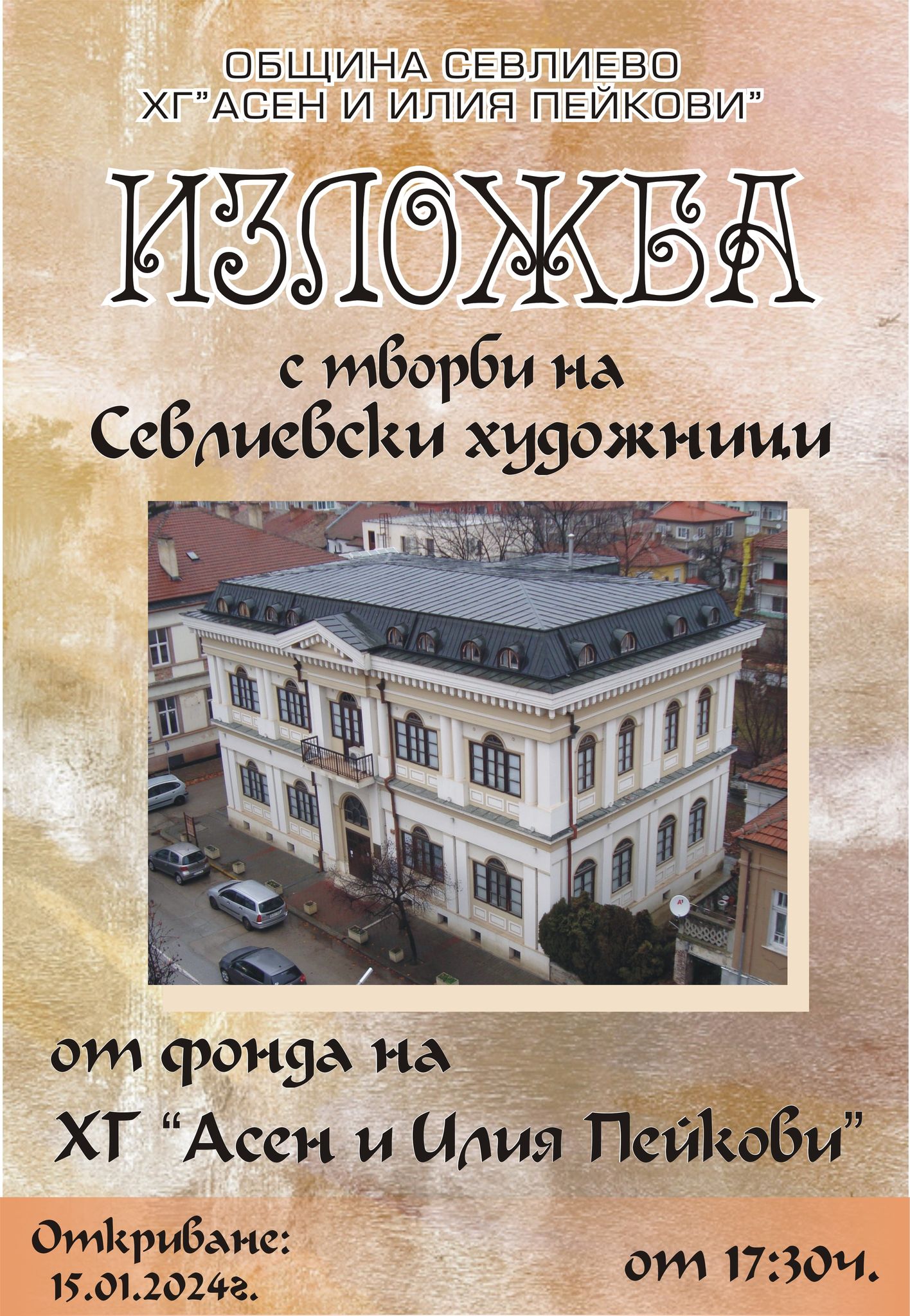 На изложба с творби на севлиевски художници кани тази вечер – 15 януари, екипът на градската художествена галерия „Асен и Илия Пейкови“. Началото ще е точно в 17:30 часа.