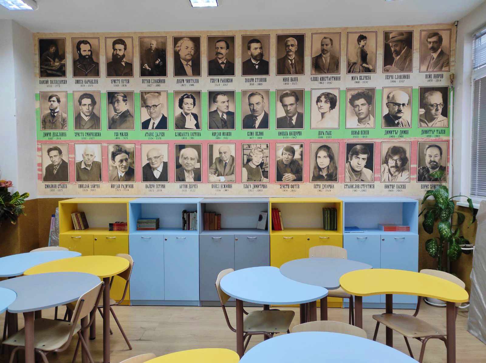 “В началото на учебната година по Национална програма „Осигуряване на съвременна, сигурна и достъпна образователна среда“, Модул 1 „Съвременна среда за качествено обучение по хуманитарни науки, изкуства и спорта”, започна обновяване на кабинета по български език и литература”, заяви в приветственото си слово директорът на училището инж. Нели Петрова. Тя благодари на учителите, които са разработили и спечелили финансирането на проекта и специално на г-жа Марияна Цонева, преподавател по български език и литература, чиято идея е оформлението на кабинета с портрети на най-известните български писатели и поети. На откриването присъстваха още зам.-директорът Наталия Иванова, Красимира Николова – преподавател по английски език и Марина Димитрова – преподавател по История и цивилизация, Философия.