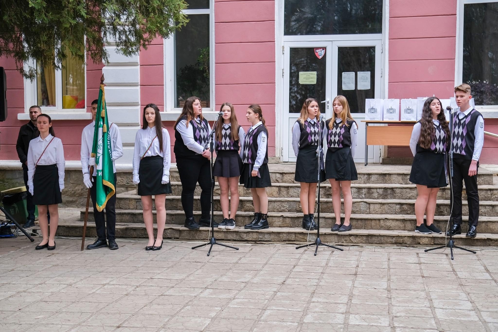 По традиция директорът на гимназията г-н Тома Томев връчи наградите за постижения и изяви в национални конкурси, олимпиади и фестивали и за принос към издигане авторитета на училището на: Александра Сашева – 7г, Владислава Тотевска – 7в, Девина Калудова – 7в, Божидар Кънчев и Симеон Иванов – 5в, Дилбер Алиман и Михаил Дянков – 5б, Биляна Хесапчиева – 4а, Александър Камбуров – 3б клас.
