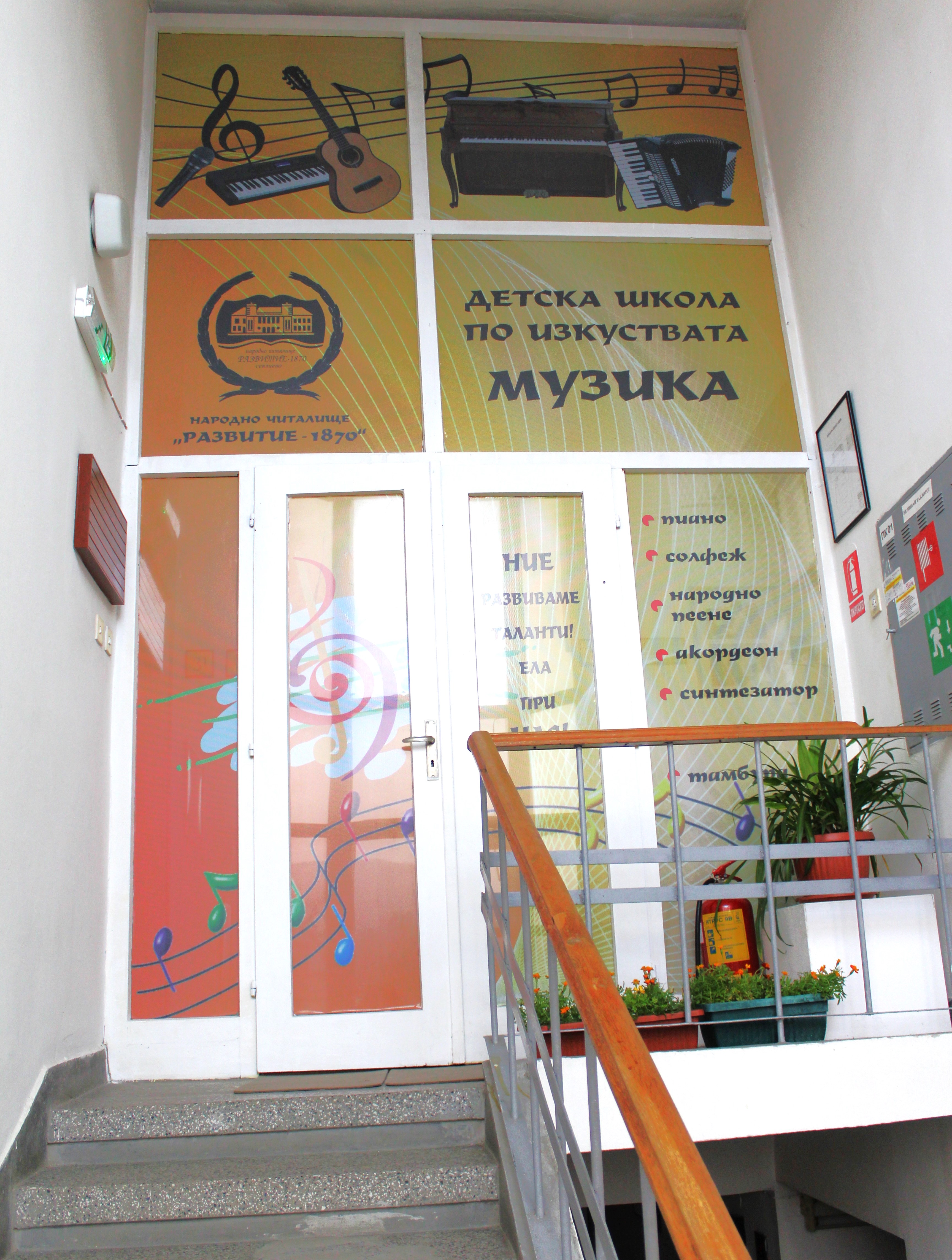 Детска школа по изкуствата при Народно читалище „Развитие-1870” е създадена преди 75 години. Изминалите години са години на търсене и усъвършенстване, на израстване. Време, през което Школата се е превърнала в търсена и уважавана, с авторитет и доказан професионализъм. Детска школа по изкуствата предлага обучение по пиано, солфеж, синтезатор, акордеон, китара, народно пеене, класически и модерен балет, изобразително и приложно изкуство. Тук се обучават над 180 деца и младежи. Неизброими са успехите и наградите, медалите и участията от национални и международни конкурси в страната и чужбина на талантите от различните изкуства. Обучението е на високо професионално ниво с преподавателите по пиано Иглика Грънчарова-Станчева, Светла Щерева – солфеж, Цветан Радков – китара и тамбура, Ценка Ганчева – синтезатор и акордеон, Александър Михайлов – акордеон и пиано, Цветина Маринова – народно пеене, Иванка Цанова – балет, Велизар Захариев – изобразително и приложно изкуство.