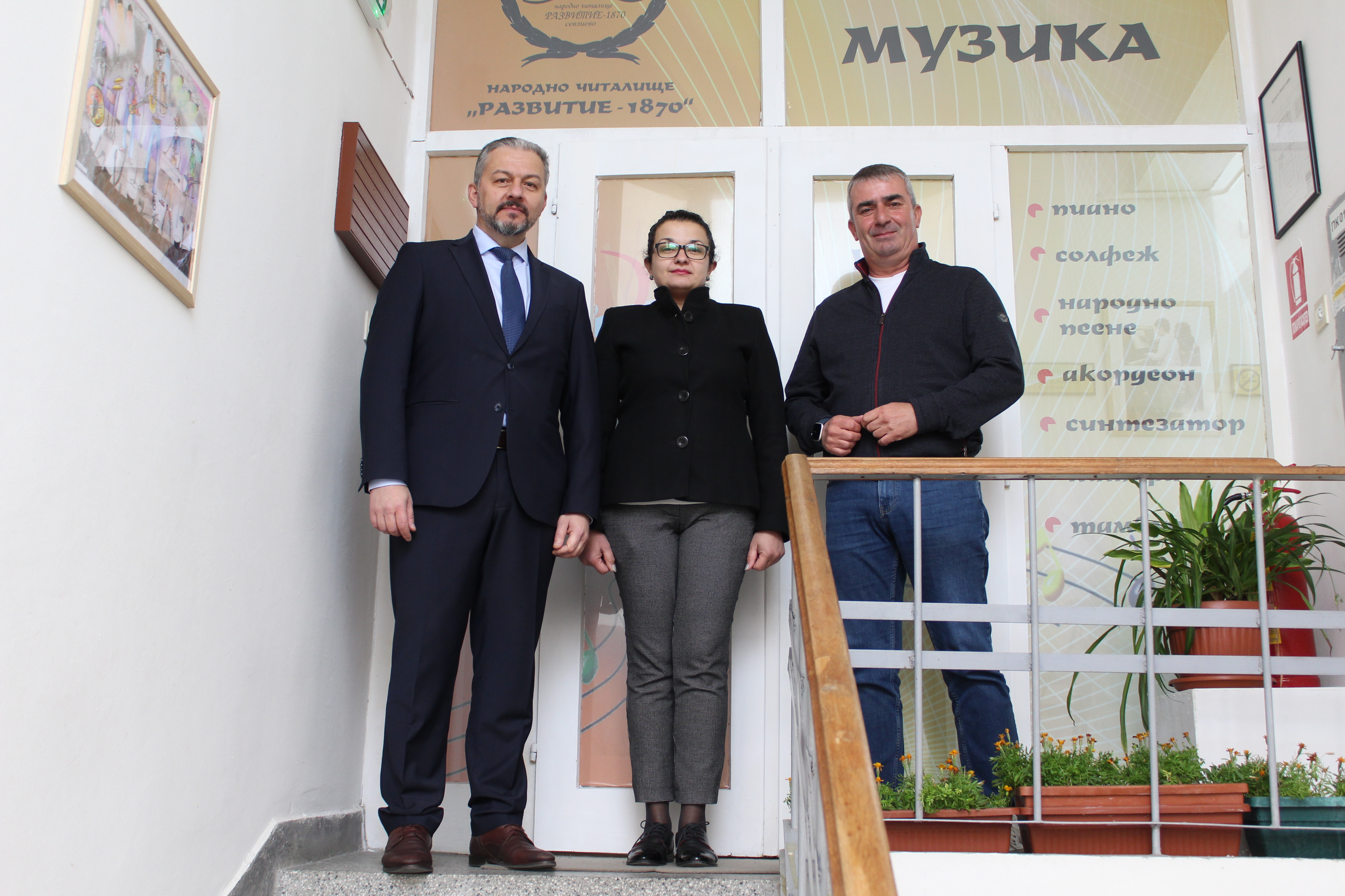 Кметът д-р Иван Иванов и заместникът му Невена Тодорова посетиха обновеното творческо пространство на Детска школа по изкуствата при Народно читалище „Развитие-1870”. Визитата, по покана на председателя Данаил Лалев, скрепи партньорството, подкрепата и сътрудничеството между културния институт с почти 155-годишна история и Община Севлиево. Градоначалникът обеща съдействие в съхраняването и развитието на светинята – Читалище, храм на българщината, достоен съвременен будител и пазител на дух, култура, традиции и ценности, като изрази надежда за привличането на още талантливи деца, които да развиват и изявяват творческите си заложби.