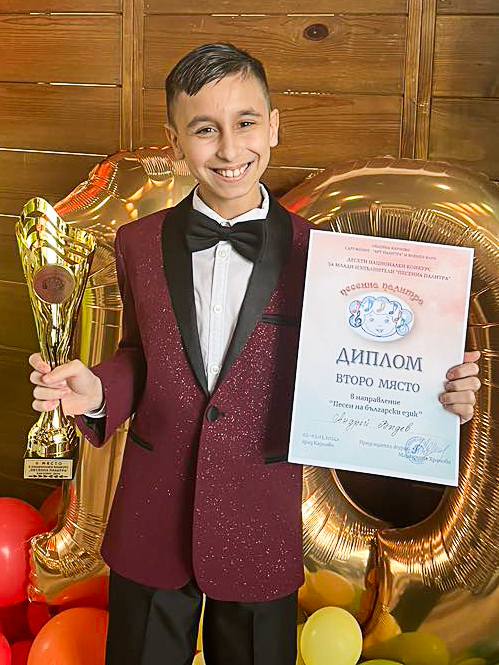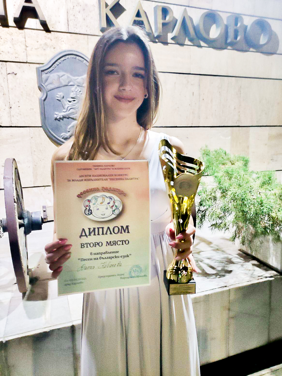 Талантливата Виана Колева, солистка на вокална формация Upstream Voices с вокален педагог Ценка Горалова, спечели първа награда, диплом и красива статуетка във втора възрастова група „Песен на български език“, с атрактивното изпълнение на песента „Жена на всички времена“ из репертоара на Петя Буюклиева. Жизнерадостното изпълнение на малката певица бе оценено от жури в състав: Маргарита Хранова, Хайгашод Агасян, Нели Андреева, Светослав Лобошки, Ганчо Гавазов, Жанина Янкулова, Ефтим Чакъров, Стела Дойкова, Асен Митев, Милена Добрева, Дани Илиева и Симона Станоева.
