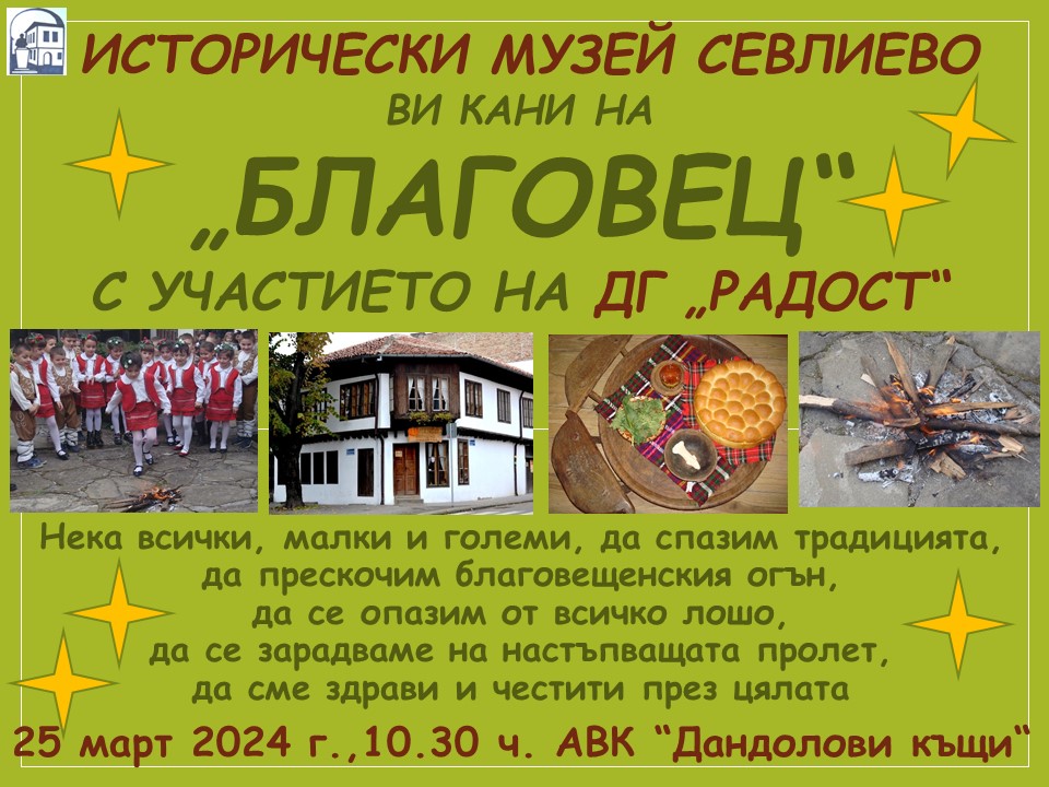 Затова на 25 март от 10:30 часа музейният екип ще спази традицията и ще представи част от ритуала, като кани севлиевци да изпълнят най-важната и забавна част – прескачането на огън.