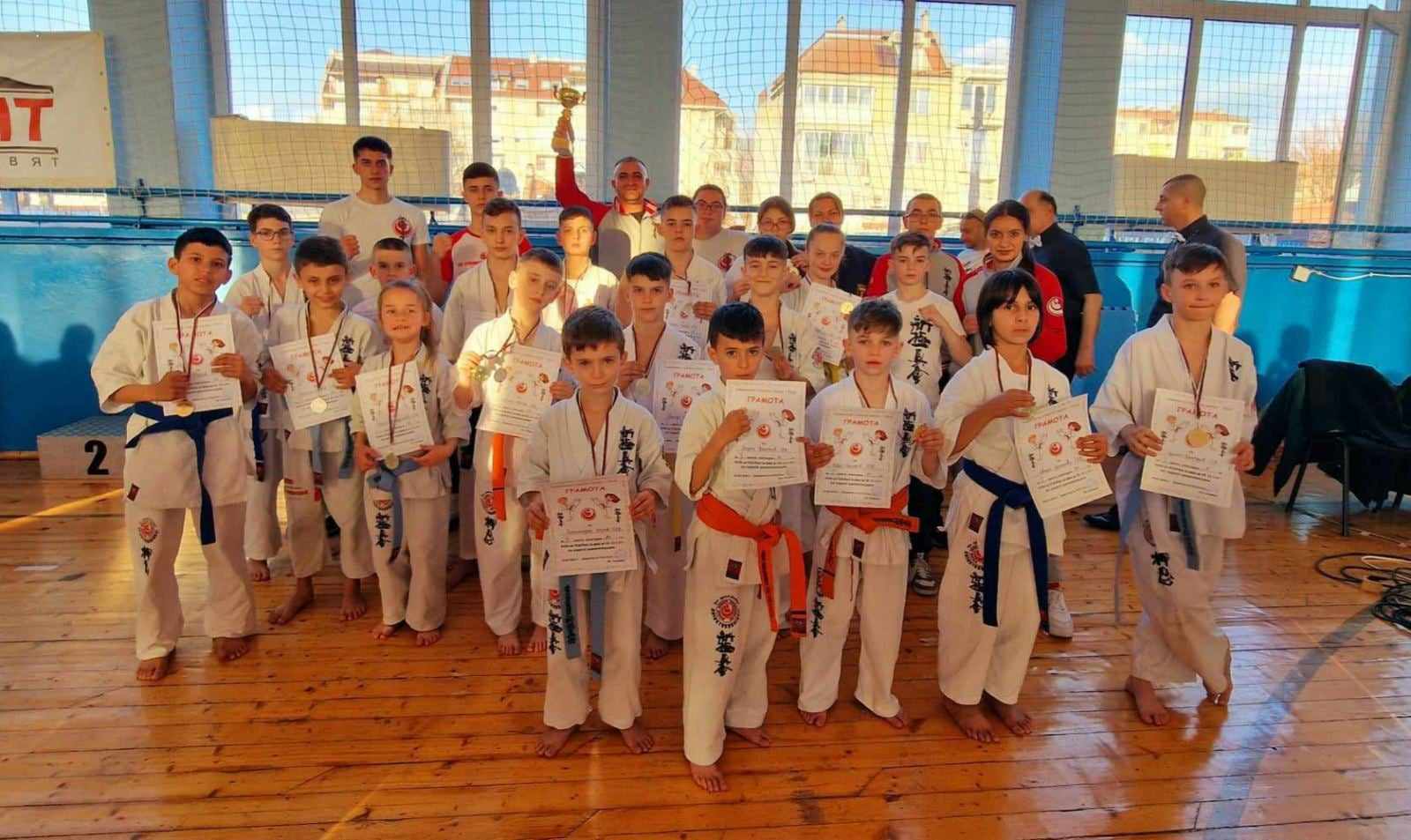 С купа за отборно първо място, 13 златни, 3 сребърни и 2 бронзови медала от традиционен турнир каратистите ни загряха за предстоящото Републиканско първенство. Надпреварата за ку-пата на Ученическата спортна школа в Русе се проведе с участието на 140 деца от клубовете в Шумен, Стара Загора, Нови Пазар, Варна и Сев-лиево. Нашият клуб участва с 18 състезатели във възрастови групи до 10,12 и 14 години.