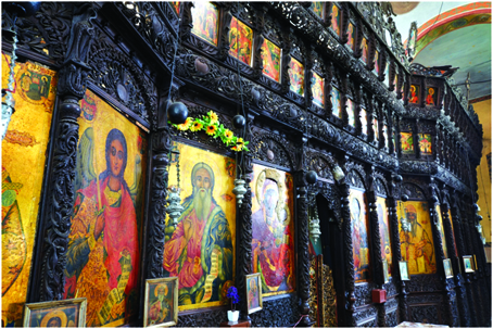 Дърворезбеният иконостас е шедьовър, а иконите от царския ред на иконостаса изписват през 1837 г. тревненския зограф Цаню Захариев и неговият син Захария Цанюв, който е един от най-известните български иконописци. Впечатляваща е и стенописната украса.