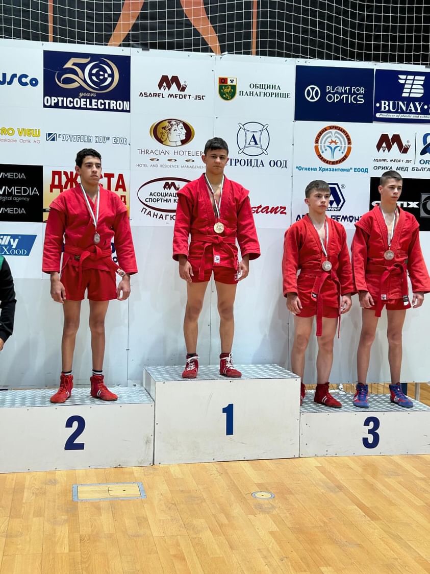 Шампионска титла и два бронзови медала добави към колекцията си клуба по самбо и джудо „Раковски“. По време на провелия се в Панагюрище Държавен лично-отборен шампионат по самбо за кадети Николай Дамянов спечели златното отличие и стана шампион. Той се класира на първо място в кат. 53 кг. Другите двама наши представители – Тодор Тодоров /кат. 58 кг/ и Десислав Йончев /кат. 71 кг/ спечелиха бронзови отличия.