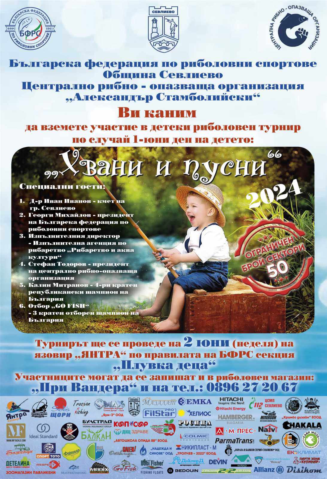 За поредна година Българска федерация по риболовни спортове, Община Севлиево и Централната рибно-опазваща организация „Александър Стамболийски“ канят най-малките жители на града да участват в детския риболовен турнир „Хвани и Пусни“. По традиция съревнованието е организирано по случай Международния ден на детето – 1 юни.