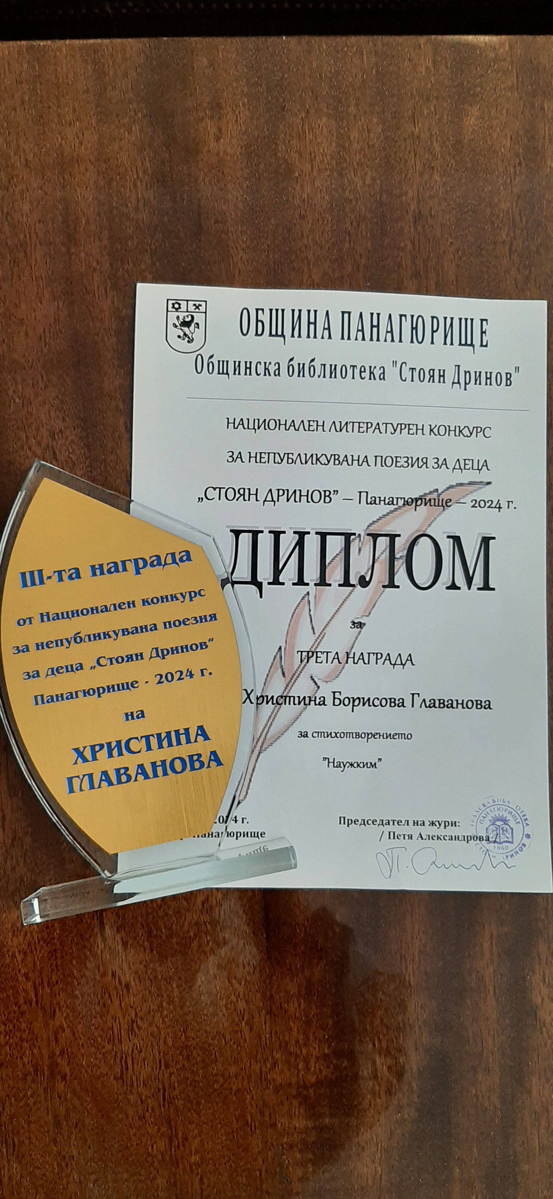 Трета награда от конкурса за детска поезия „Стоян Дринов” – Панагюрище