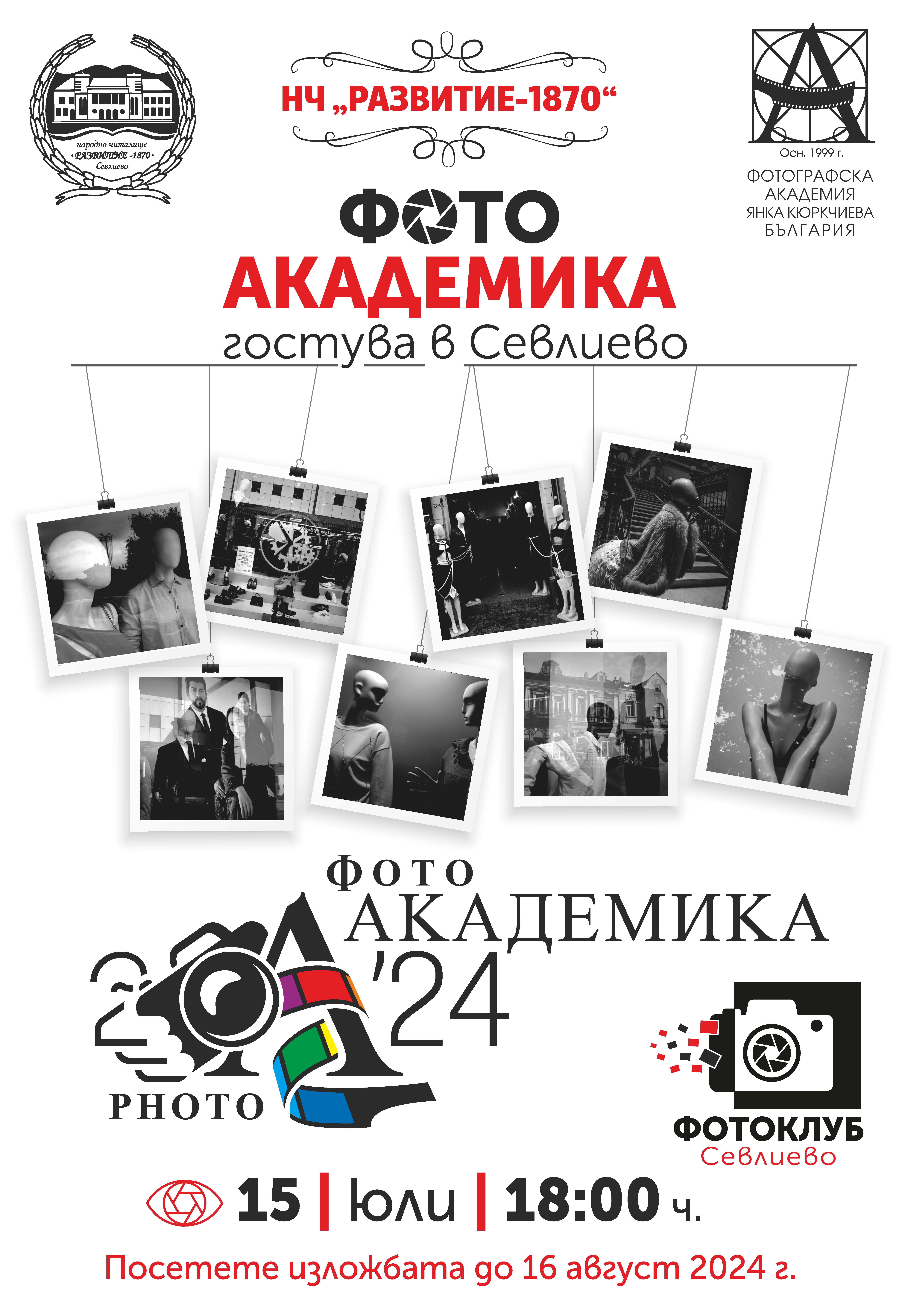 „Фото Академика 2024” – националният ежегоден годишен преглед на фотографското изкуство в България, гостува в Севлиево. Откриването на изложбата с финалистите от 25-то поредно издание на форума ще се състои на 15 юли 2024 г., от 18:00 ч., в Народно читалище „Развитие-1870”. Новият председател на Национално сдружение фотографска академия „Янка Кюркчиева” Антон Савов ще е специален гост на събитието.