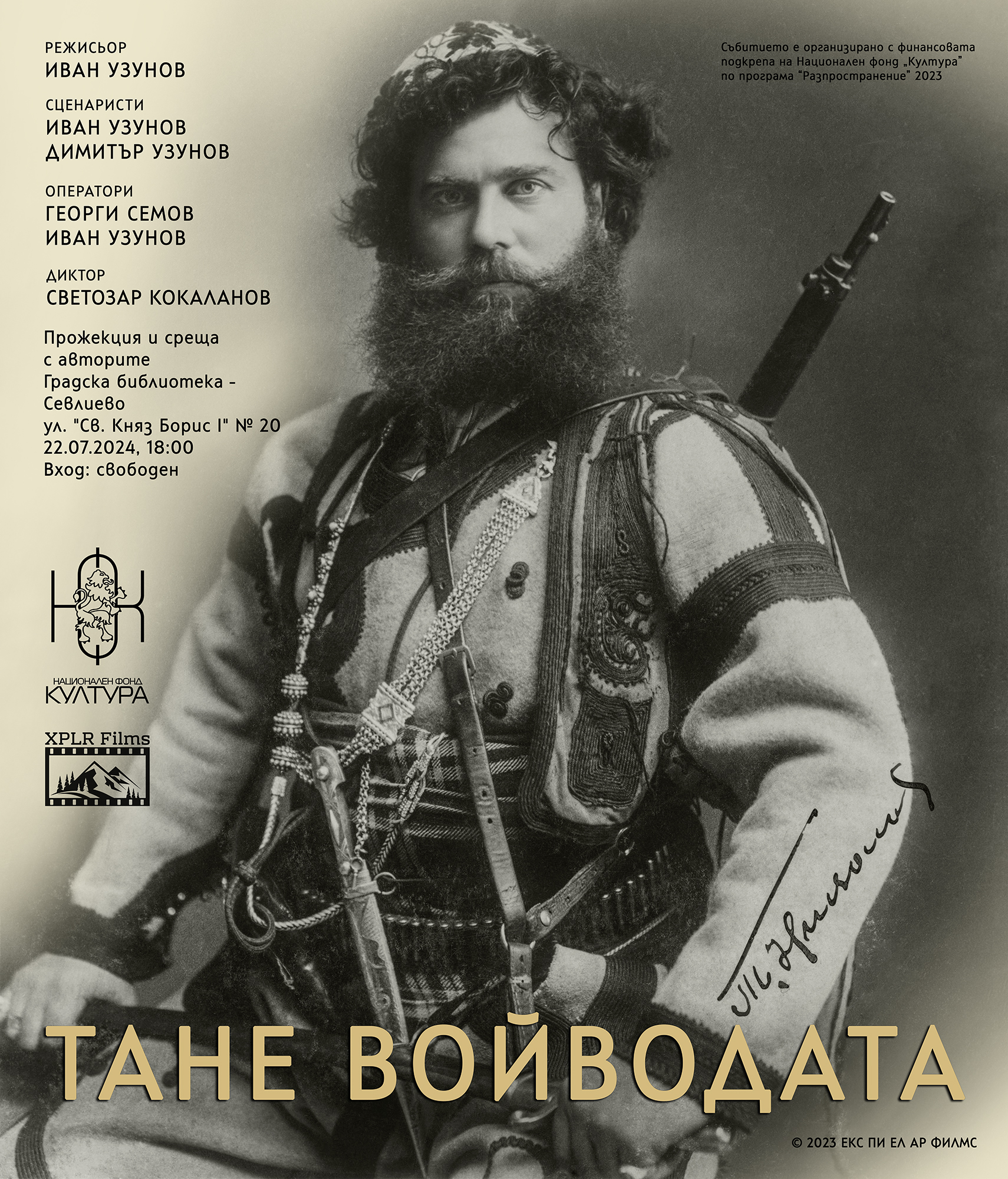 На 22 юли, понеделник, в Градска библиотека – Севлиево, от 18:00 ч., ще се състои прожекция и среща с авторите на филма за македоно-одринския революционер „Тане Войводата”. Входът е свободен.