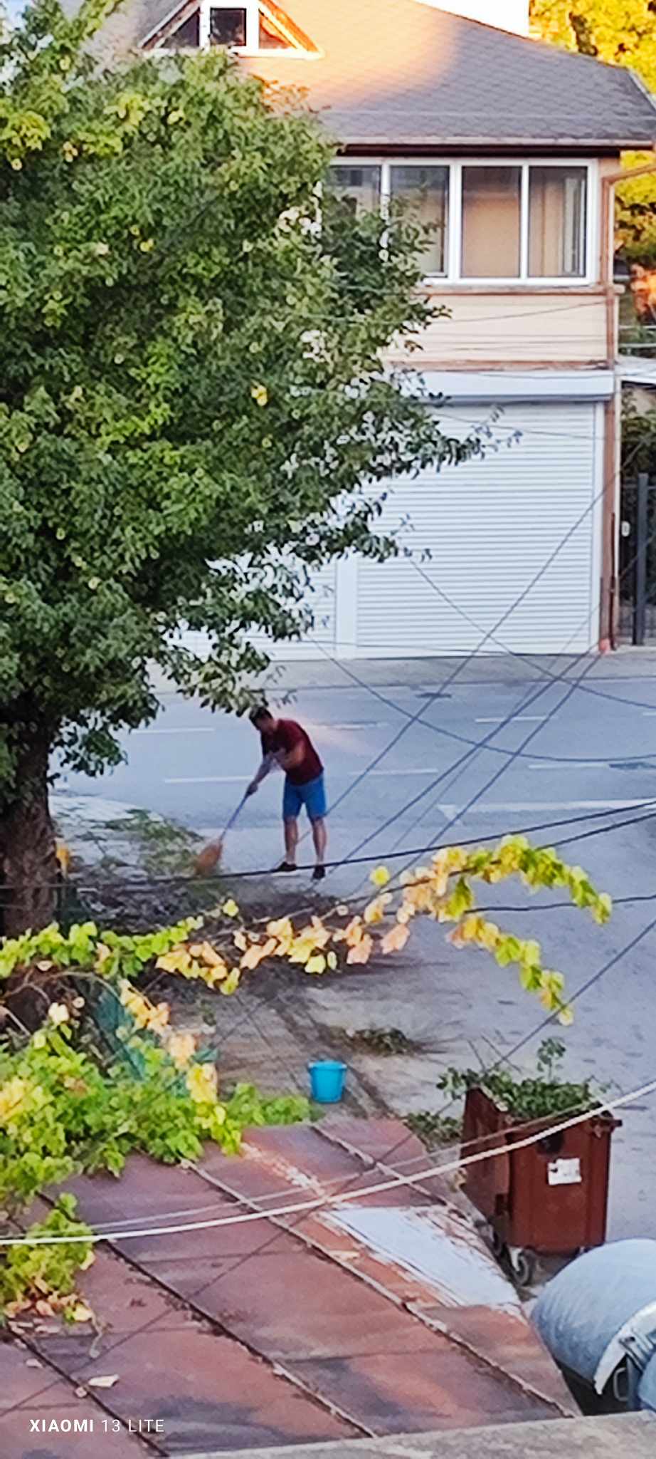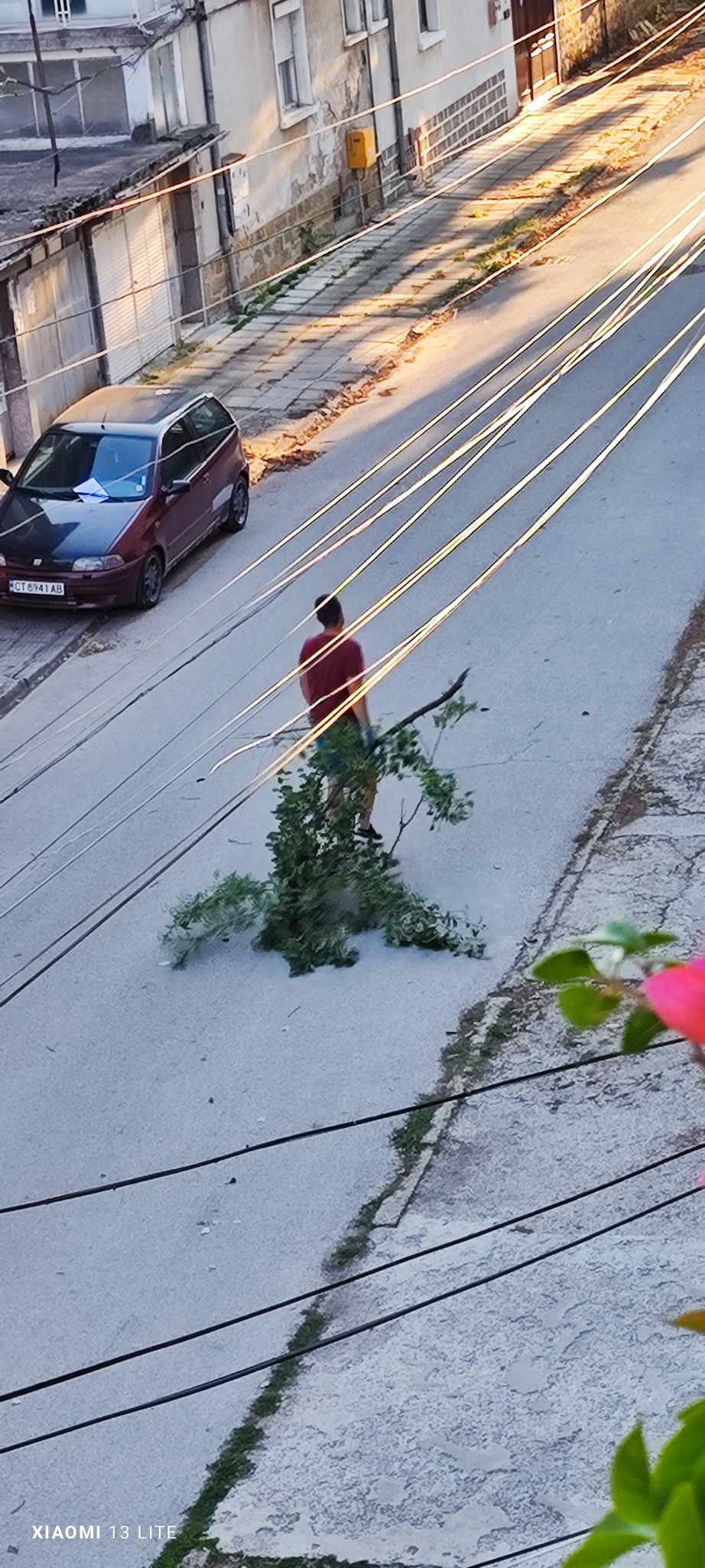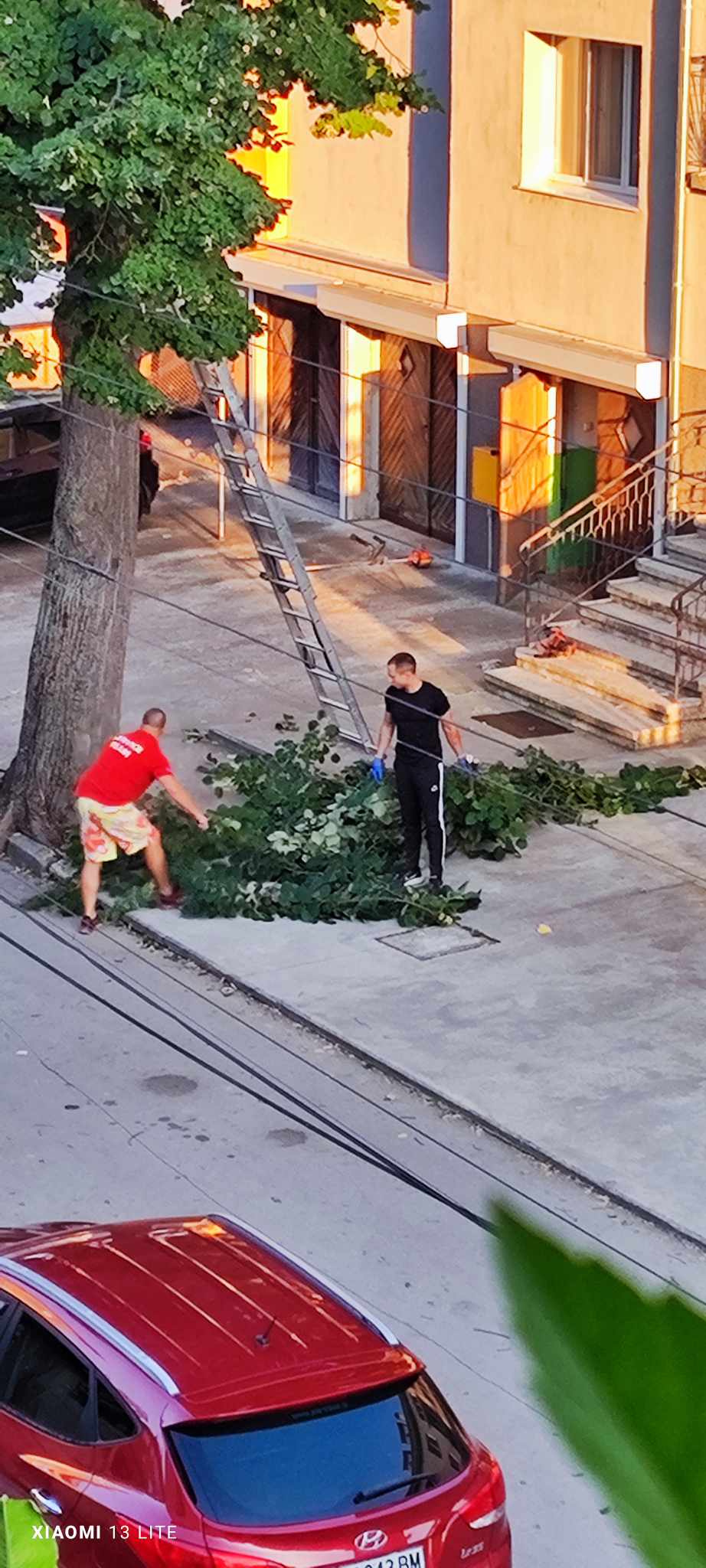 През това време друг мъж, „въоръжен“ с тример, изчиства избуелите треви пред портата на запустяла къща и неподдържан от собствениците тротоар, изчиства огромните прораснали клони от корените на няколко липи. Нищо, че коренищата са надигнали тротоара толкова много, че е станал непроходим. И не само това – изчистват остатъците от изпопадалите листа и клони, измитат след себе си.