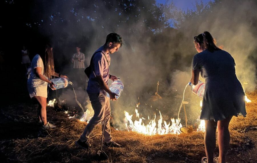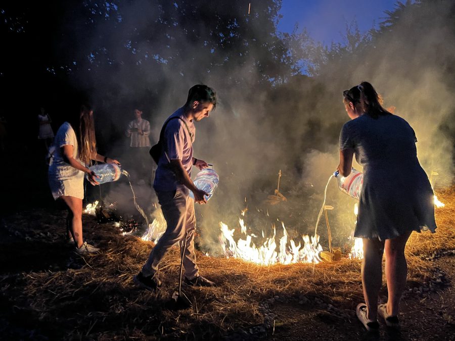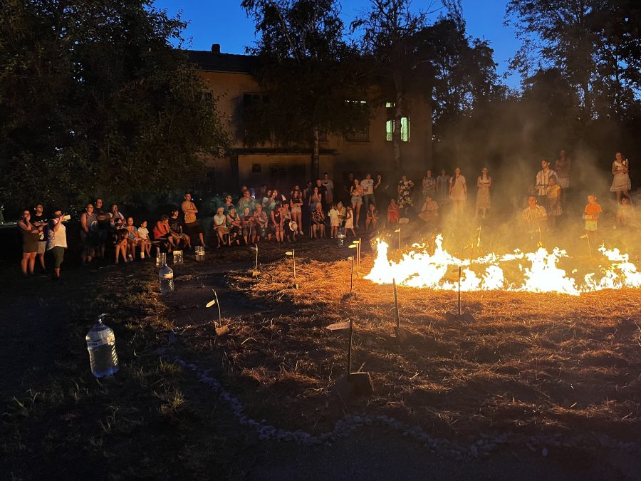„На земята със слама е изобразена огромна карта на община Павликени с всички населени места и бъдещия завод на „Петрургия“ ООД във Върбовка, направен от бирени кенчета. Изведнъж моделът на сградата на Румен Гайтански – Вълка пламва, от него се издигат гъсти пушеци и след малко половината от сламената „Павликенска област“ е изгорена от огъня. Лицата на зрителите са огрени от пламъците, децата се надвикват: „Дано Горна Липница не изгори!“. Тогава жителите на селото хващат туби с вода и смело изгасят огъня. След водата от жълтата слама е останало малко, по-голямата част от „Павликенско“ е в черна кал, а всички присъстващи са силно впечатлени. С това свое представление артистът Кристофър Кръстев цели да накара хората да помислят за последствията от изграждането на завода и да ги призове да запазят природата”, писа на 13 август великотърновския вестник „Борба”.
