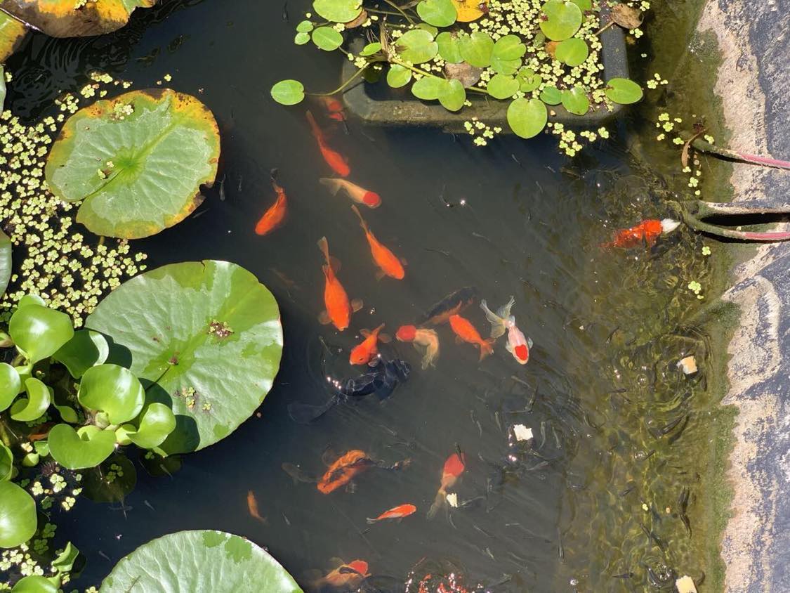 Между езерата се преминава през красиви каменни мостчета, а покрай тях има алеи с арки от рози, жасмини, лози и всякакви други храсти, растения и билки, които Балкана ражда. В двора има и красиви беседки, в които гостите могат да почиват и работят онлайн, независимо от кой край на света са дошли.