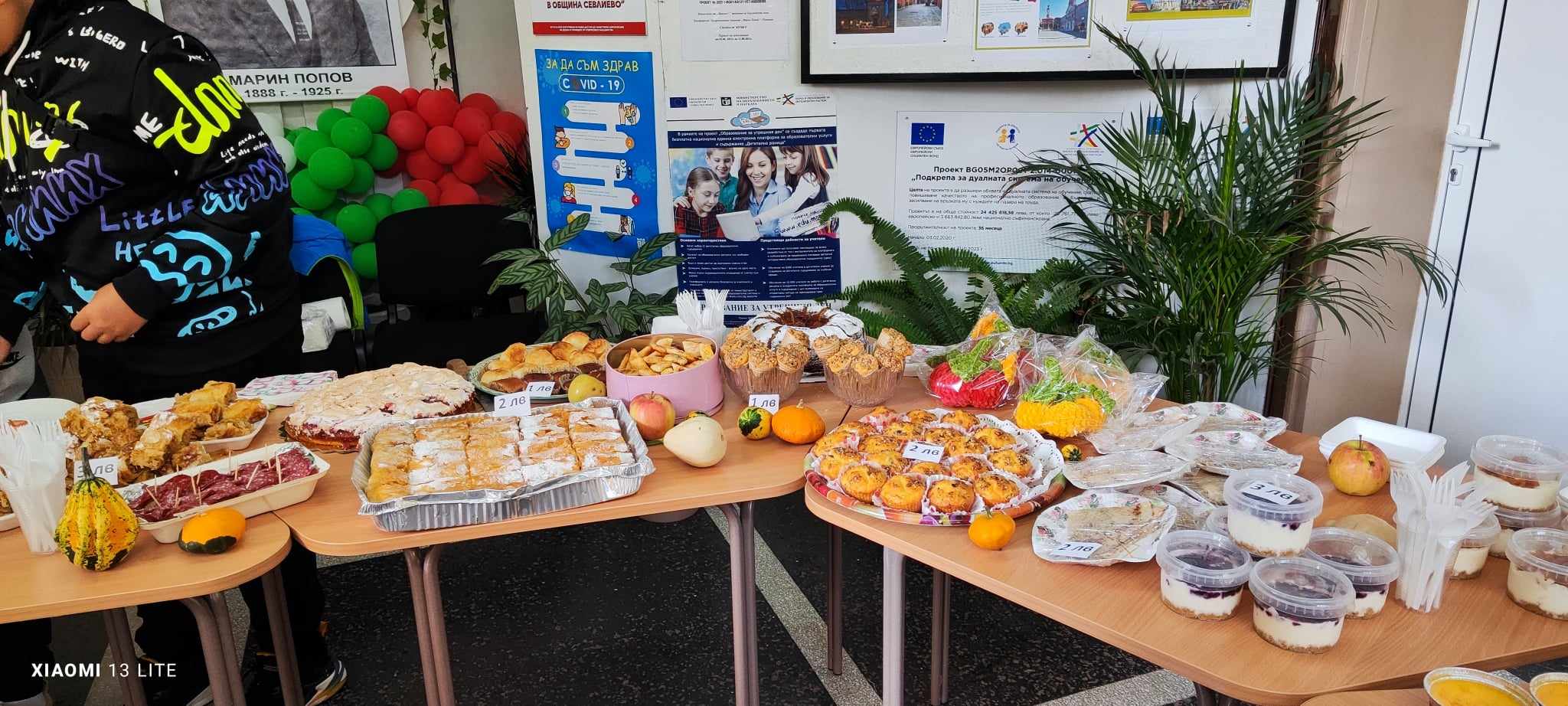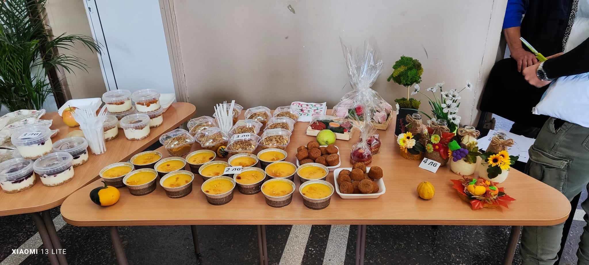 Обединени в името на доброто, родители и ученици се включиха с ръчно изработени изделия и вкусни домашни лакомства. Масите бяха отрупани с разнообразие от тиквени пайове, тиквени сладкиши, кремове с тиква, палачинки, мъфини, фунийки, тиквеник с локум, тиквен крем карамел, дребни сладки, други вкусотии и дори цяла торта.