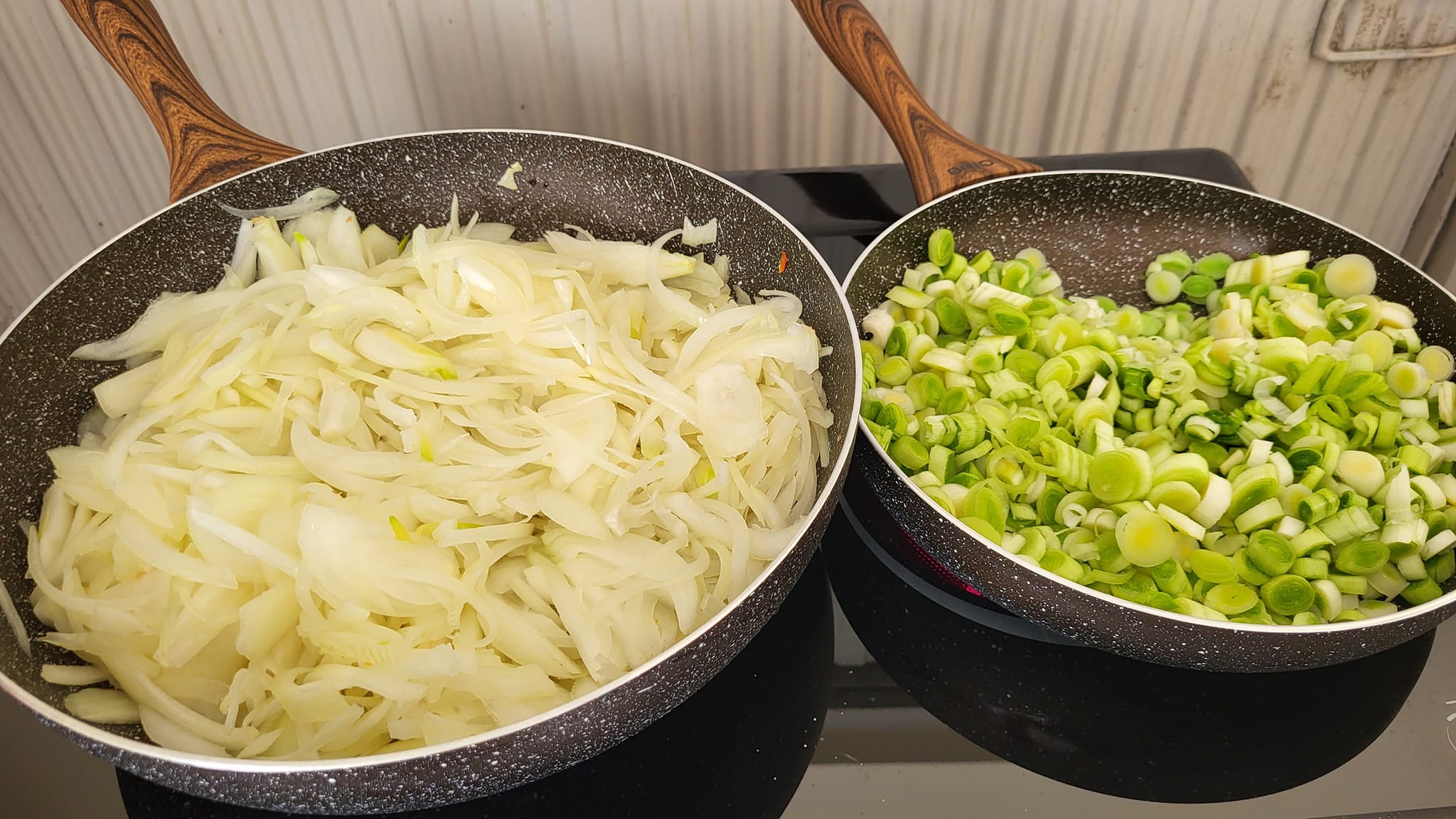 А лучникът е почти готов. Много праз лук, леко задушен, кисело мляко, яйца, масло, обилно количество сирене. Добре изпечен, бухнал, той се хареса на всички.