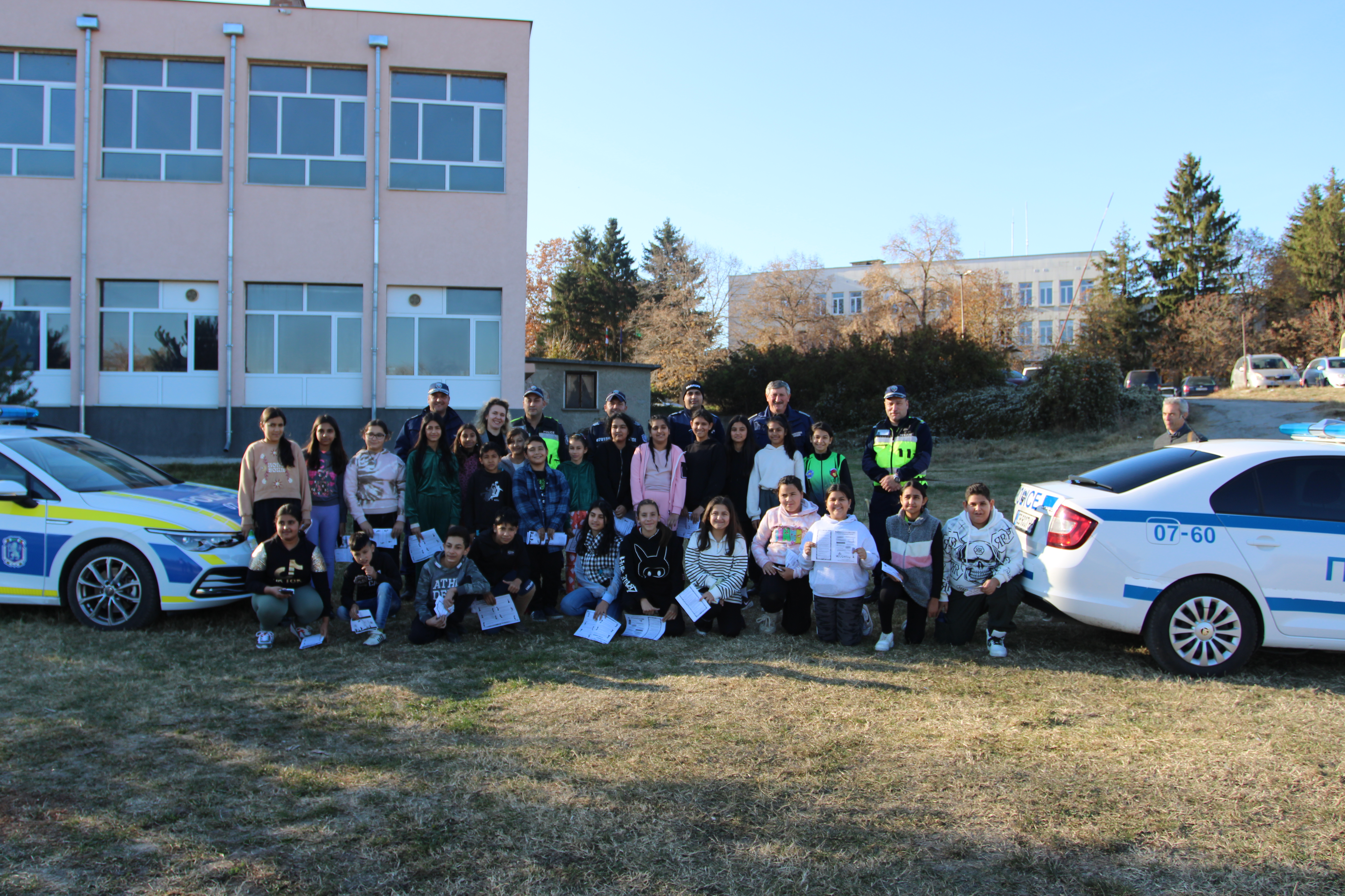 А полицейски инспектор от „Пътна полиция“ им припомни и някои основни правила по пътна безопасност. Децата поличиха по една брошура със съвети как да се пазят сами на пътя и в превозните средства, за да не попаднат в пътна злополука.