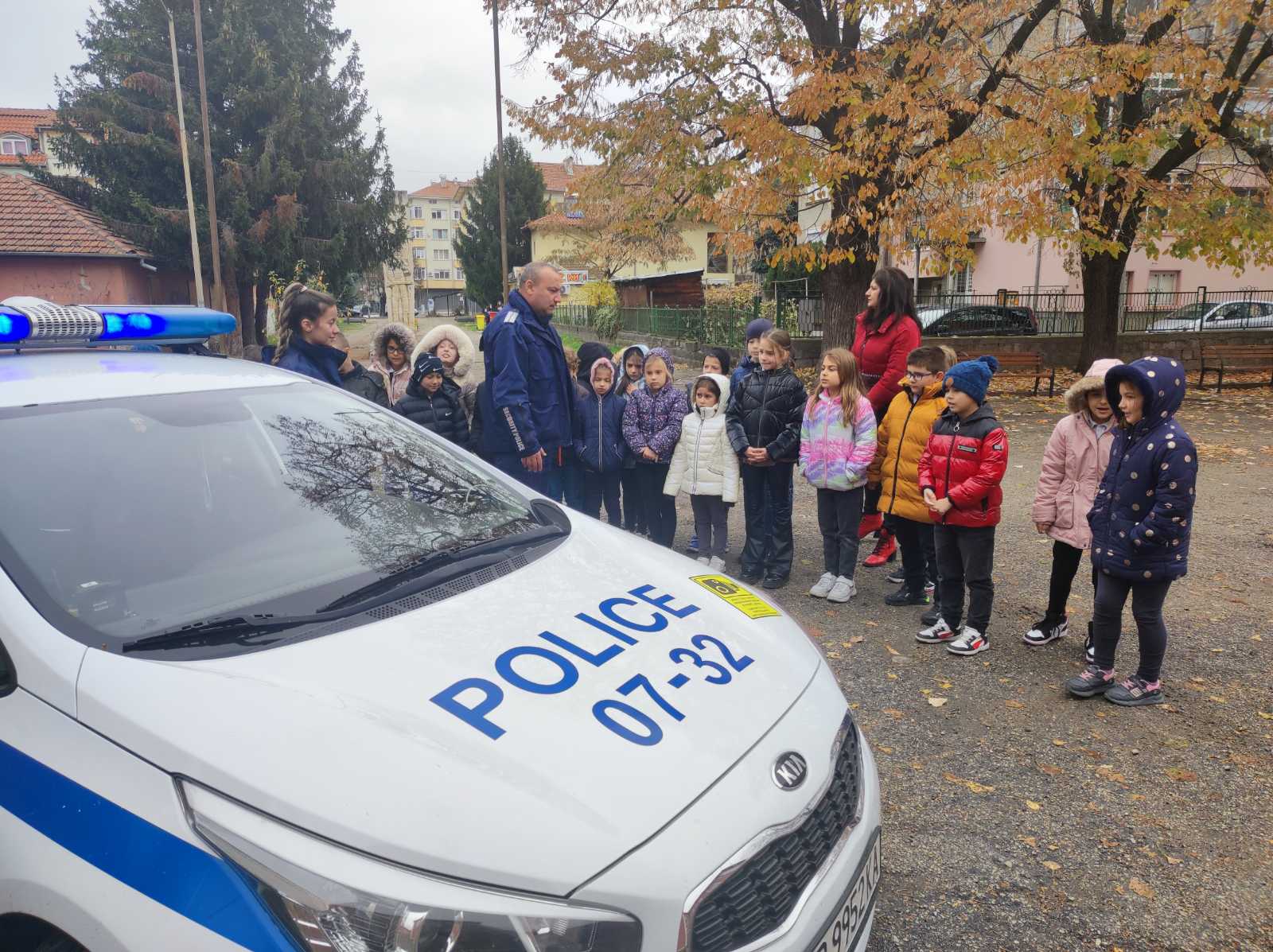 Занятието бе онагледено с презентация, представяща и другите структури на МВР. Интерес сред малчуганите предизвика патрулният автомобил, с който служителите изпълняват своята дейност на пътя. Пол. инсп. Маринов обясни накратко за видовете режими, с които се движи превозното средство и как гражданите трябва да реагират в определена ситуация, когато патрулният автомобил е в специален режим на движение.