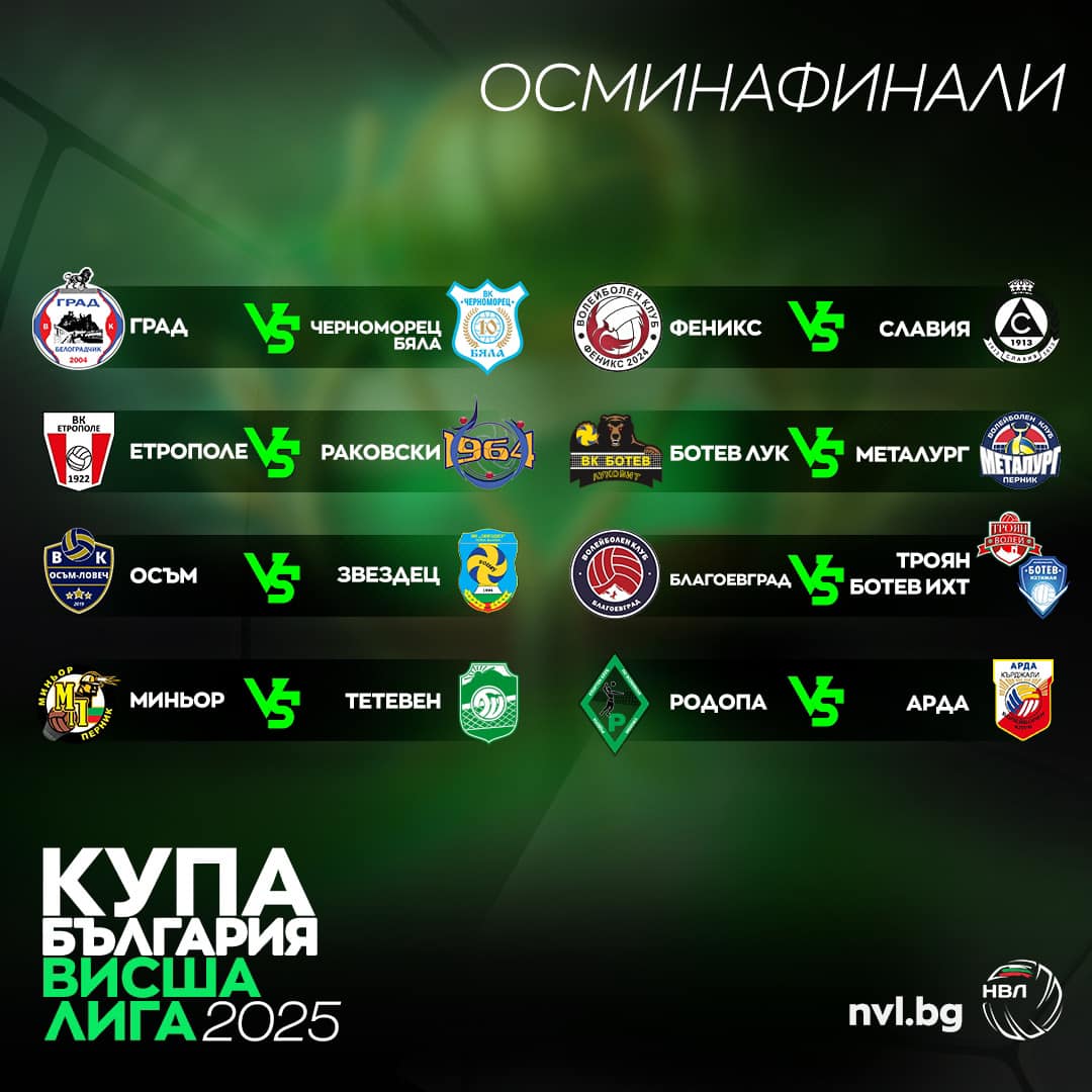 С интересни двубои започва турнирът за Купа България Висша лига. Това стана ясно след изтеглянето на жребия за осминафиналите на надпреварата във второто ниво на шампионата. Двубоите ще се изиграят на 14 декември (събота).
