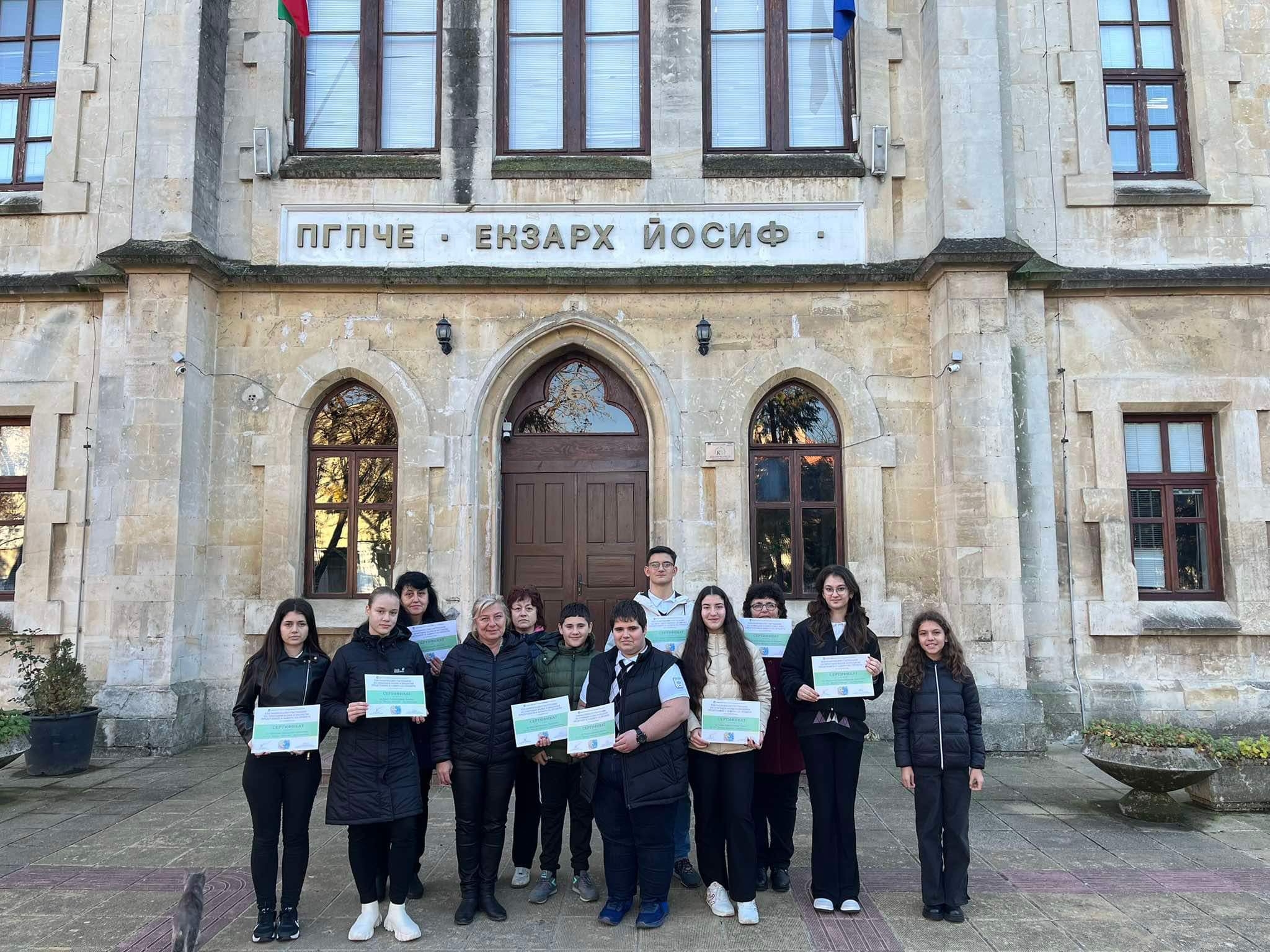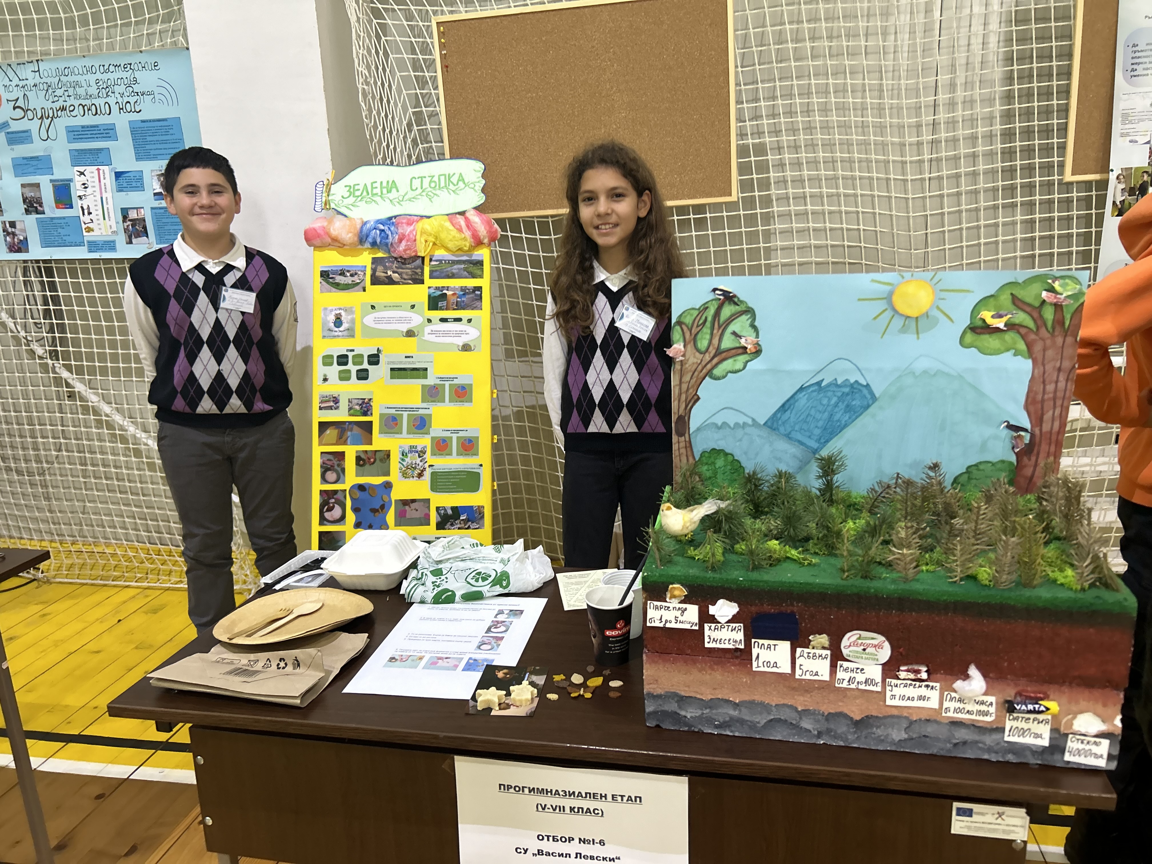 СУ „В. Левски“ участва с четири проекта: един в първа и три във втора възрастова група. Проектът на Никол Минкова -5б клас и Калоян Сашев -6в клас, с ръководител г-жа Ана Жекова – старши учител по биология и здравно образование, спечели трето място с 49,8 точки. С проекта учениците целяха да призоват обществото да предприеме малки, но значими мерки за опазването на околната среда. Те се фокусираха върху намирането на алтернативни предмети, които не вредят на природата. За изпълнението на своя проект те проведоха експеримент и успяха да създадат “казеинова пластмаса” с помощта на оцет и затоплено прясно мляко.