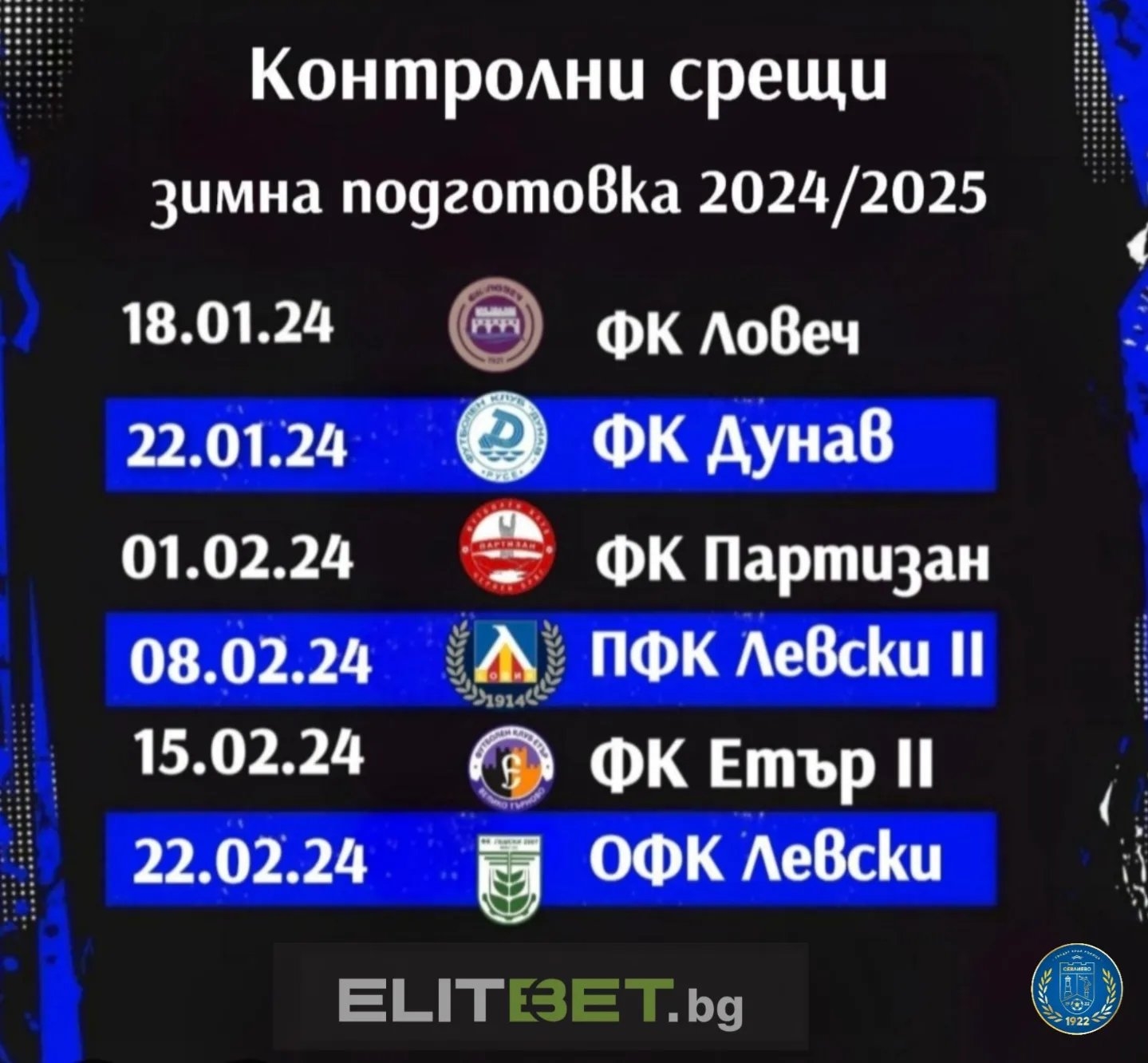 Шест контролни срещи вече са договорени през зимната подготовка на представителния отбор на ФК „Севлиево. Тимът ни, който е временен водач в Северозападната Трета лига, ще се събере на първи лагер сбор на 13 януари. В ход вече е новата селекция.