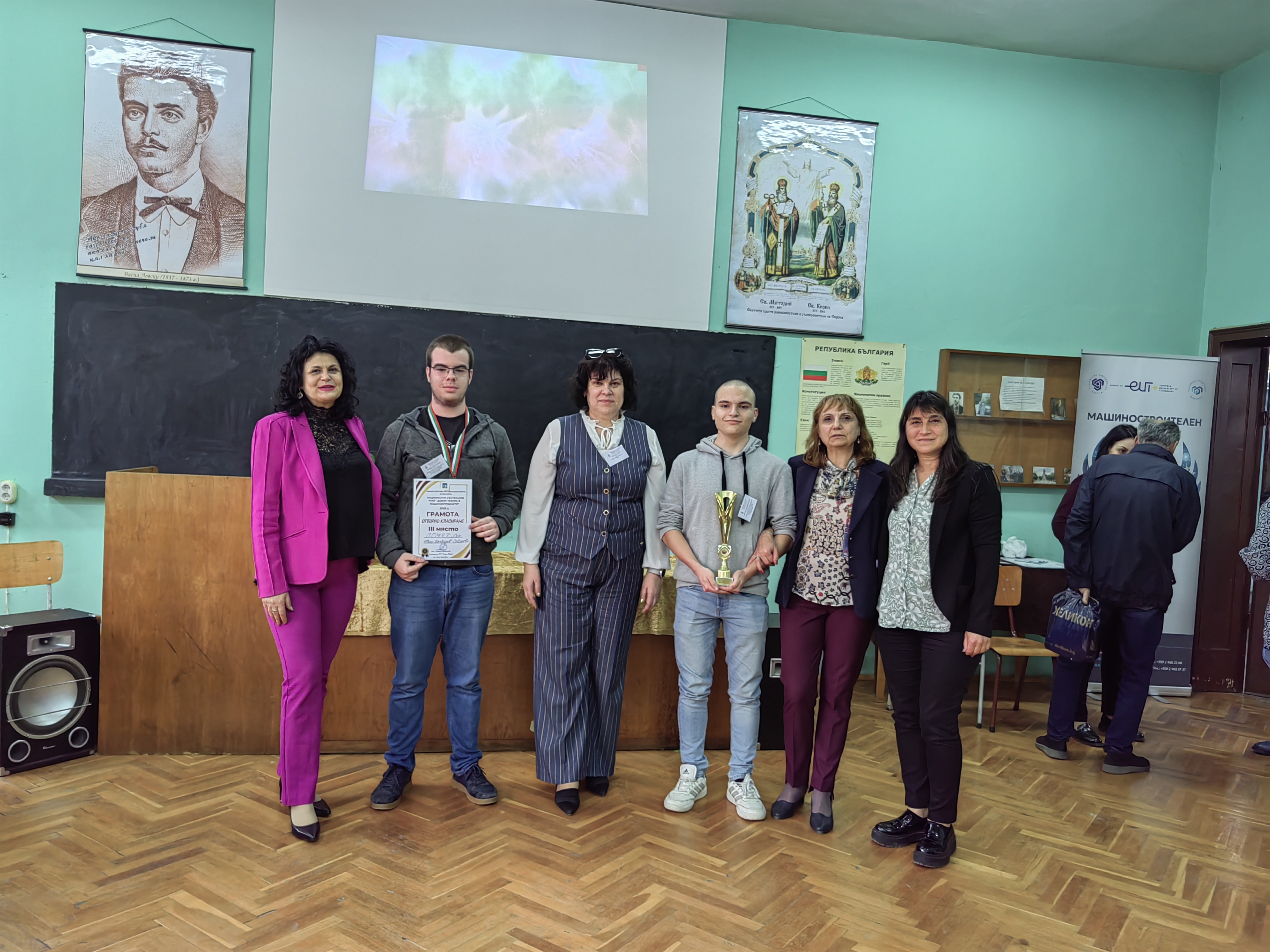 В резултат на неуморната работа на учителите от професионална подготовка по теория за професиите от професионалните направления „Машиностроене, металообработване и металургия”, учениците Боримир 12б и Мирослав 12б достойно представиха ПГМЕТ „Ген. Иван Бъчваров“ – Севлиево като спечелиха трето място в отборното класиране. Втори стана отборът на ПГМЕЕ – Бургас, а НГПТО „М. В. Ломоносов“ – София спечели първото.