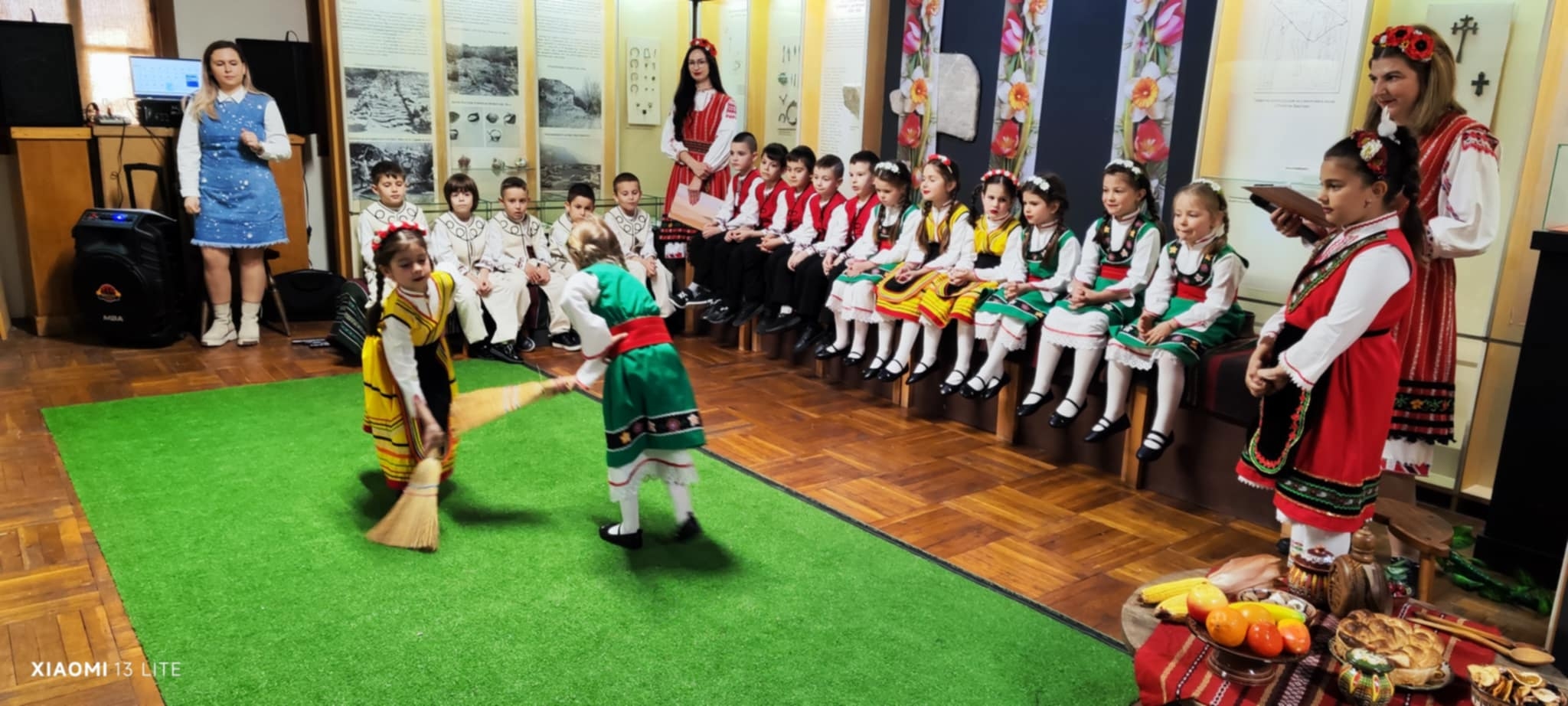 В празничната програма се включиха малчуганите от група „Барборино“ на детска градина „Пролет“, както и талантливите изпълнители от вокална група „Шарени цветенца“ при Народно читалище „Развитие-1870“. С много настроение, пъстри носии и ентусиазъм, децата пресъздадоха красотата на народните традиции, предавани от поколение на поколение.