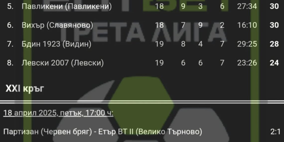 Срещата е от 22 кръг на ELITBET Трета Северозападна лига, на 26 април от 17 часа, на стадион „Раковски“.
