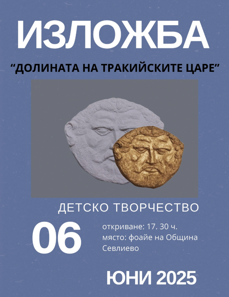 Тази вечер, в 17:30 часа, във фоайето на Община Севлиево ще бъде открита детска изложба „Долината на тракийските царе“. Арт събитието събира в себе си духа на историята, красотата на изкуството и вдъхновението на младото поколение. Изложбата е част от националната инициатива на Движението на просветителите в подкрепа на каузата долината на тракийските царе да бъде включена в Списъка на световното културно наследство на ЮНЕСКО.