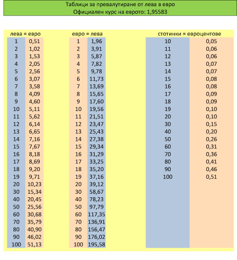 Заради подобни сигнали в резултат на вече доброволно започналото при някои търговци двойно обозначаване на цените – в лева и в евро, онлайн платформата „Ние, потребителите“ разпространява таблица за превалутирането. Този дигитален ресурс, който лесно се превръща в аналогов, показва изчислените по правилата стойности на левовете в евро, на стотинките в евроцентове и обратно – на еврото в левове и на евроцентовете в стотинки. Таблицата може да бъде в помощ на потребителите в периода на двойното обозначаване на цените, което трябва да започне на 8 август, в случай че през юли бъде взето решение за присъединяването на България към еврозоната. Тя може да бъде и добър инструмент за упражняване на граждански контрол относно коректността при превалутирането.