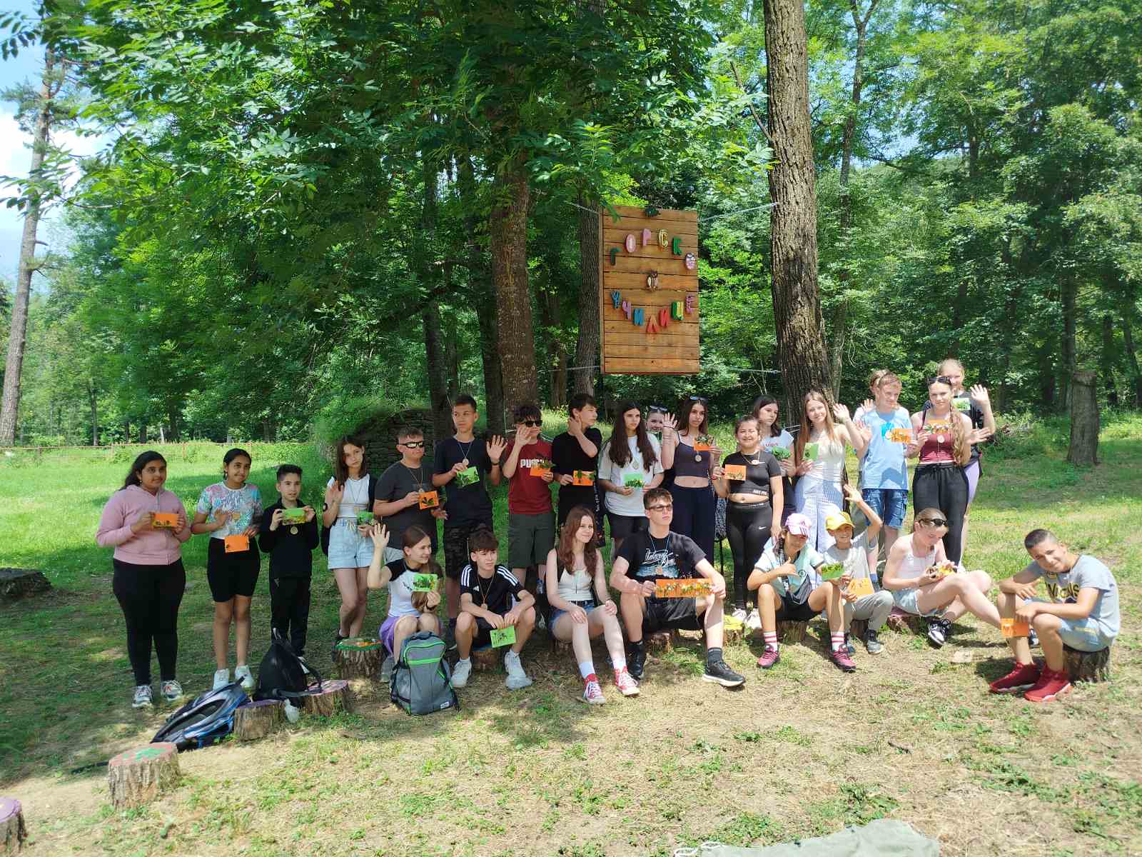 След това, придружени от горския педагог и лесовъд инж. Боян Топузов, гостите се запознаха с разнообразните лечебни растения, с които по-късно си направиха чай на огън, запален с чакмак и кремък от горския служител. Докато събираха билки и диви ягоди, учениците откриха новородено малко на елен лопатар. Без да го докосват те го разгледаха, снимаха го и се върнаха до огнището, оставяйки уплашеното малко на грижите на притеснената му майка.