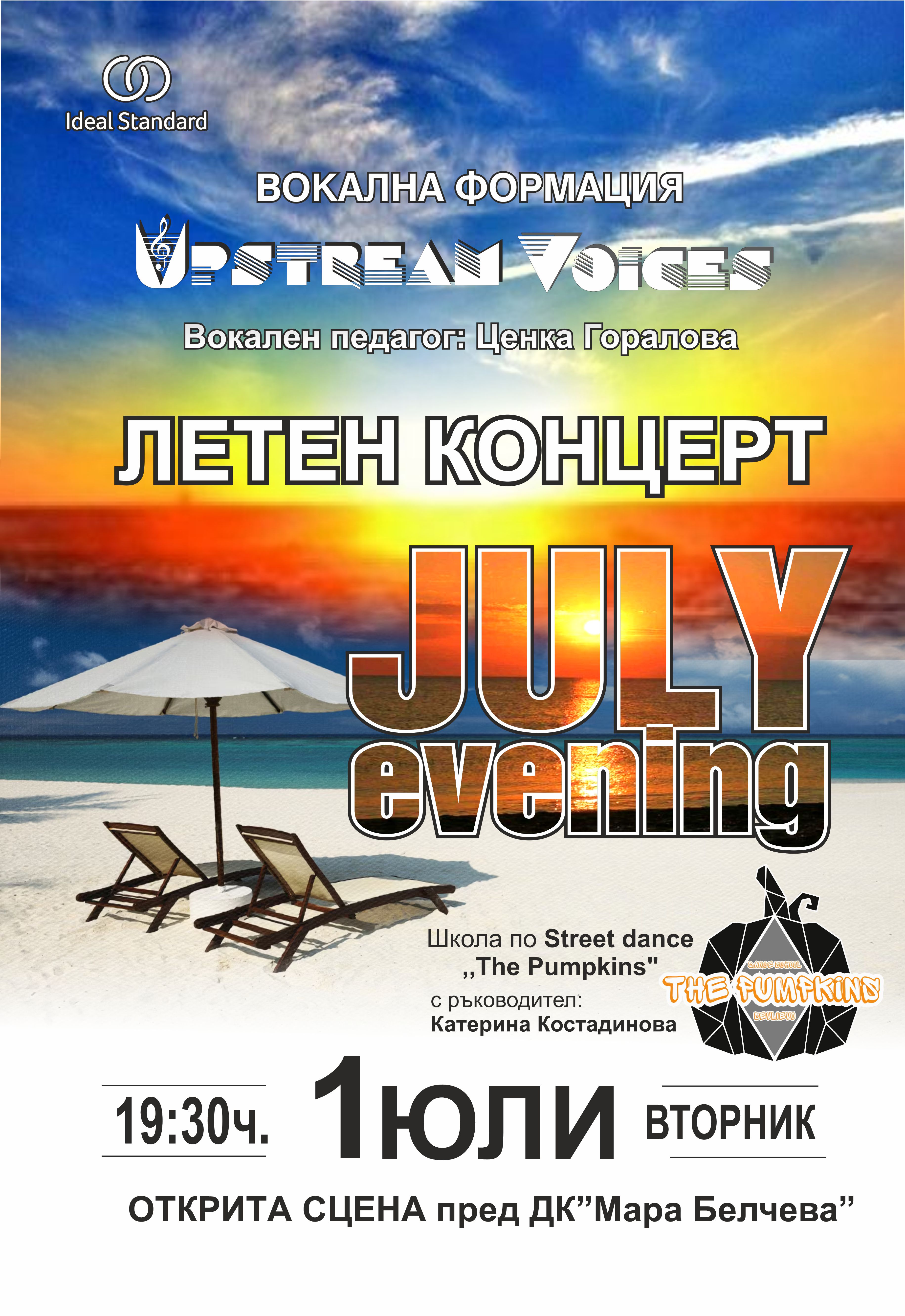 За разлика от всички, които на 1 юли посрещат изгрева, в Севлиево ще почетат JULY EVENING – с летен концерт на откритата сцена пред дома на културата “Мара Белчева”.