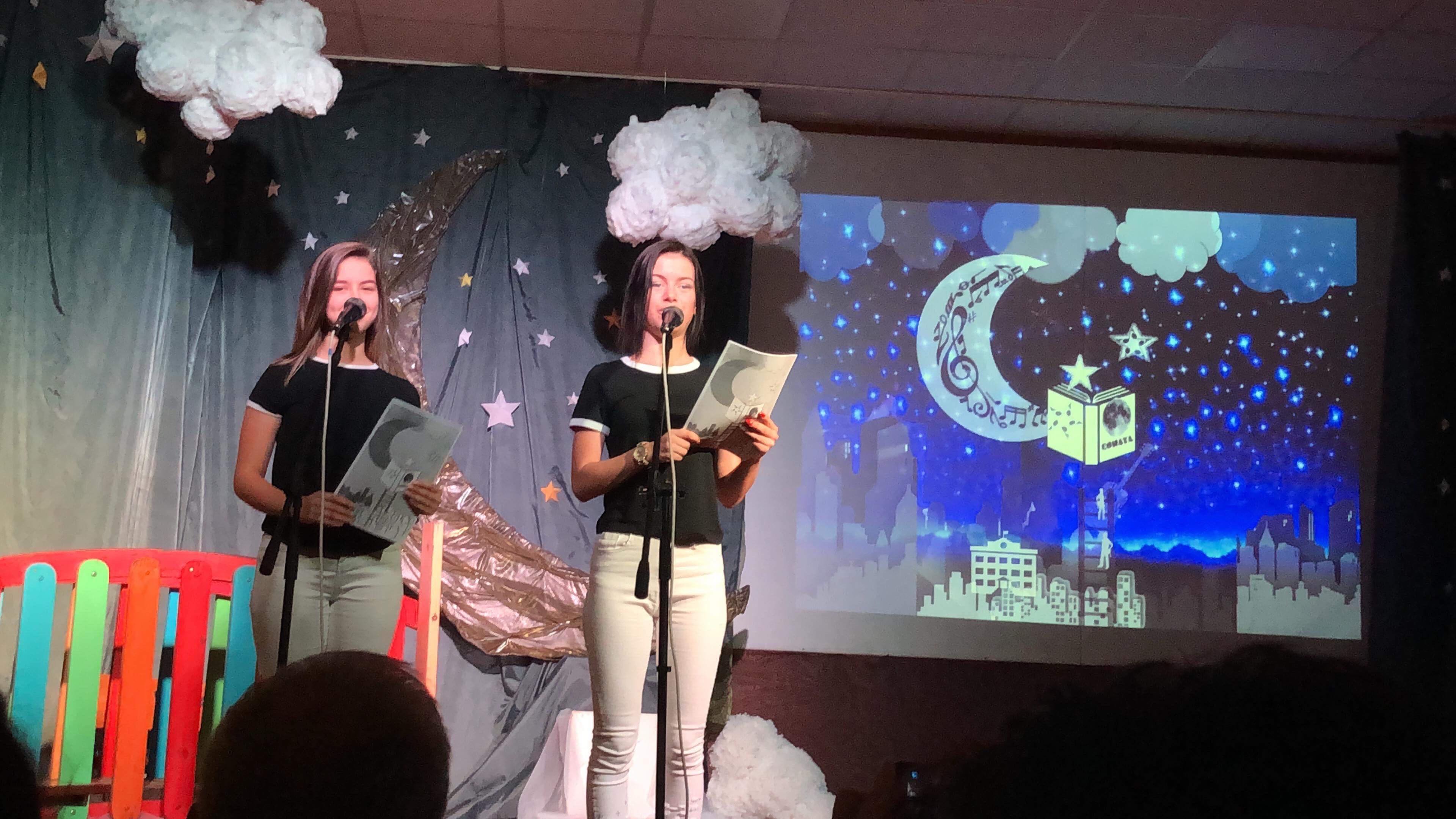 Тема на събитието беше не само обаянието на тези две изкуства, а и величието на луната – този красив тайнствен спътник, озаряващ ни всяка нощ. Песните и стихотворенията в спектакъла бяха посветени на луната. Деца от различни класовете пееха, танцуваха, рецитираха и се забавляваха на сцената. Участие взе дори учителят по физическо възпитание Боян Ботев, чието певческо изпълнение беше съпроводено от китарата на Моника Златева-11”а” клас.