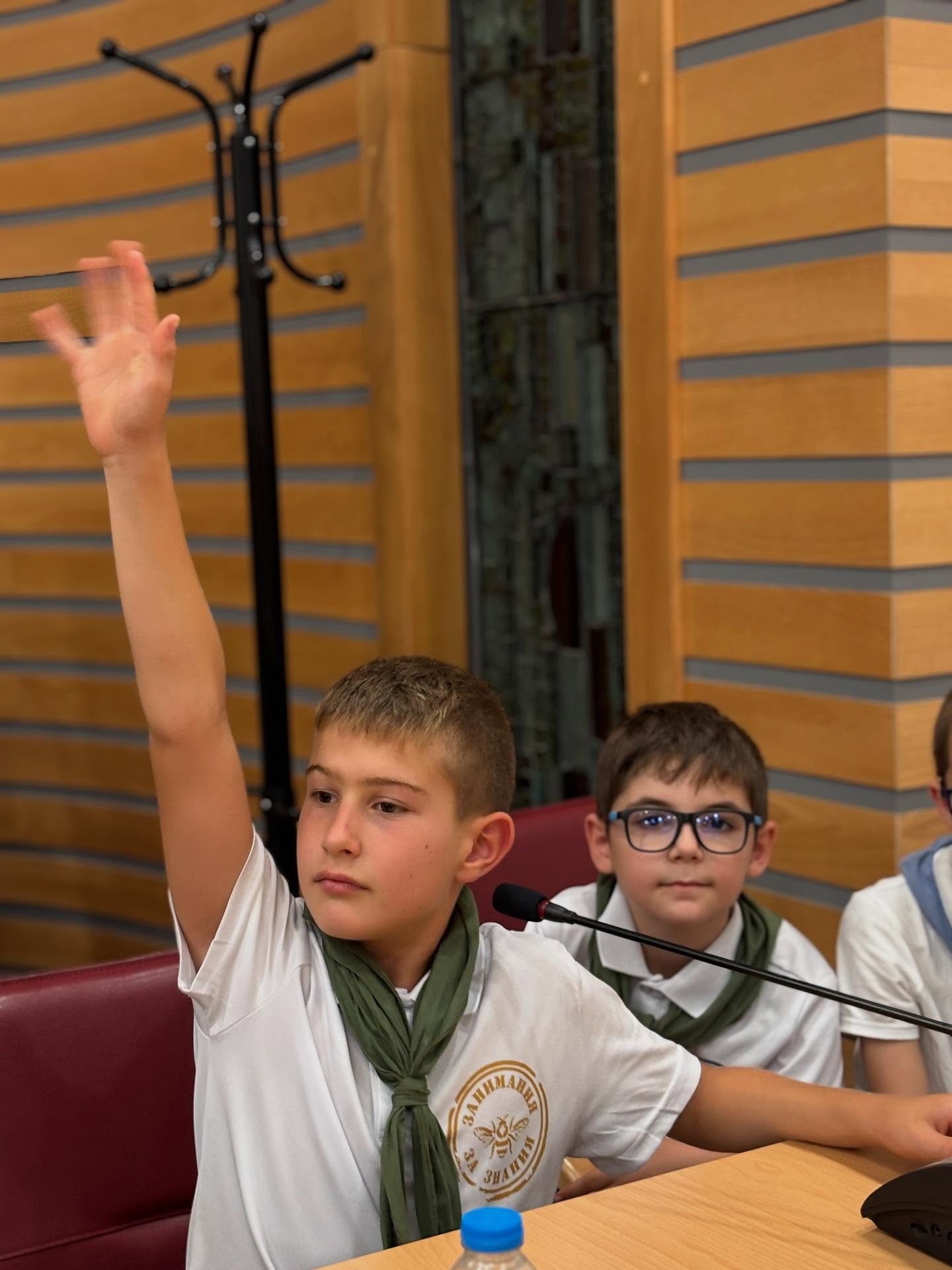 Следващото посещение отведе малките любознайковци в Община Севлиево, където бяха посрещнати от заместник-кмета инж. Красимира Йорданова. В зала 300 децата се почувстваха като истински специални гости. Г-жа Йорданова им разказа за работата на общинската администрация и отговори на всичките им въпроси – ясно, достъпно и вдъхновяващо. За финал всички получиха лакомства и образователни подаръци.