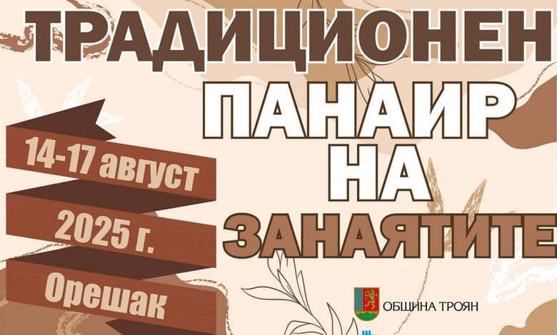 От 14 до 17 август 2025 г. в село Орешак, община Троян, ще се проведе Традиционният панаир на занаятите – едно от най-посещаваните събития в региона, съобщава oblasta.com. Събитието съвпада с храмовия празник на Троянската света обител „Успение Богородично“, когато на 15 август множество миряни се стичат, за да се поклонят пред чудотворната икона на Пресвета Богородица Троеручица.