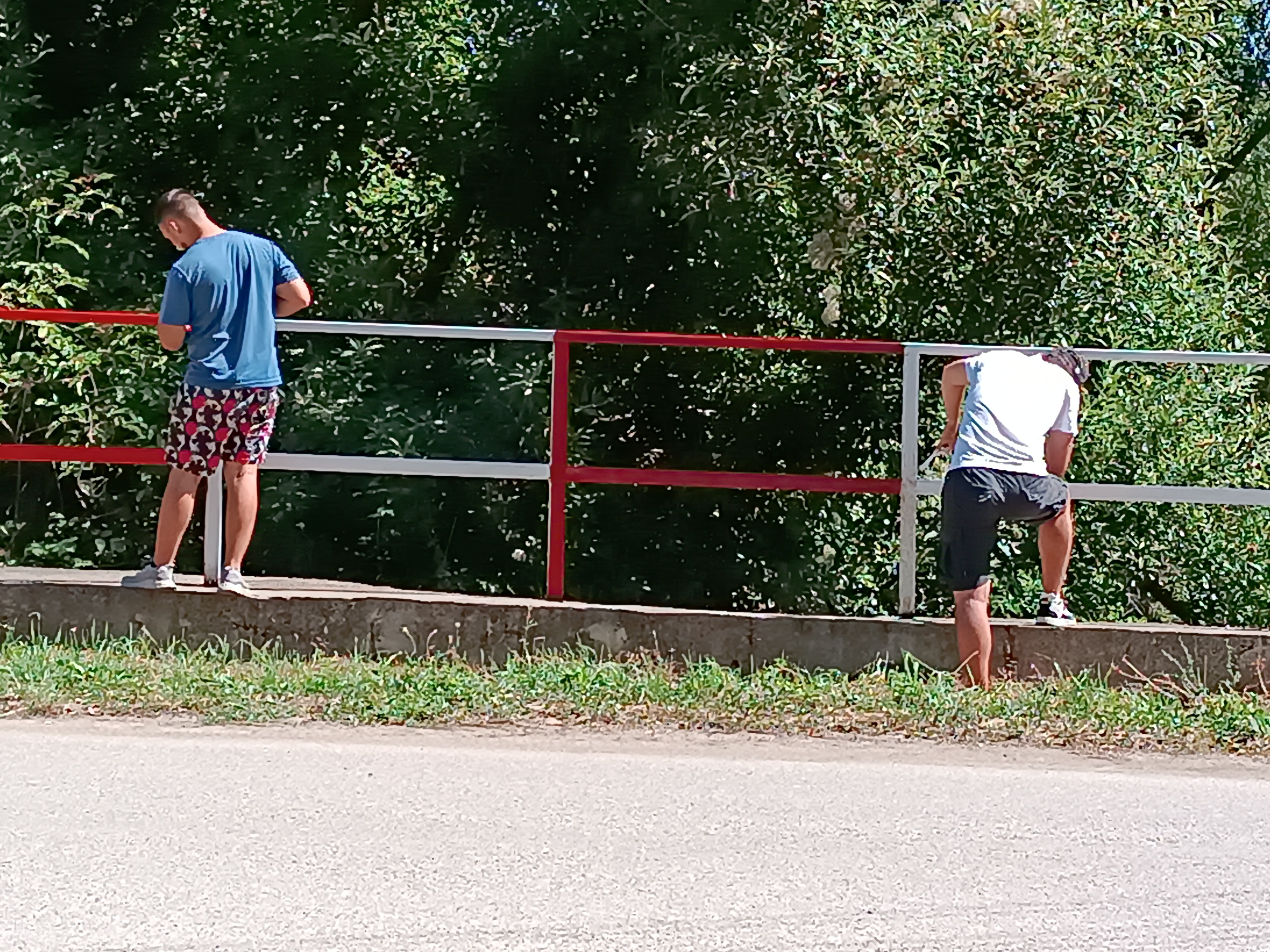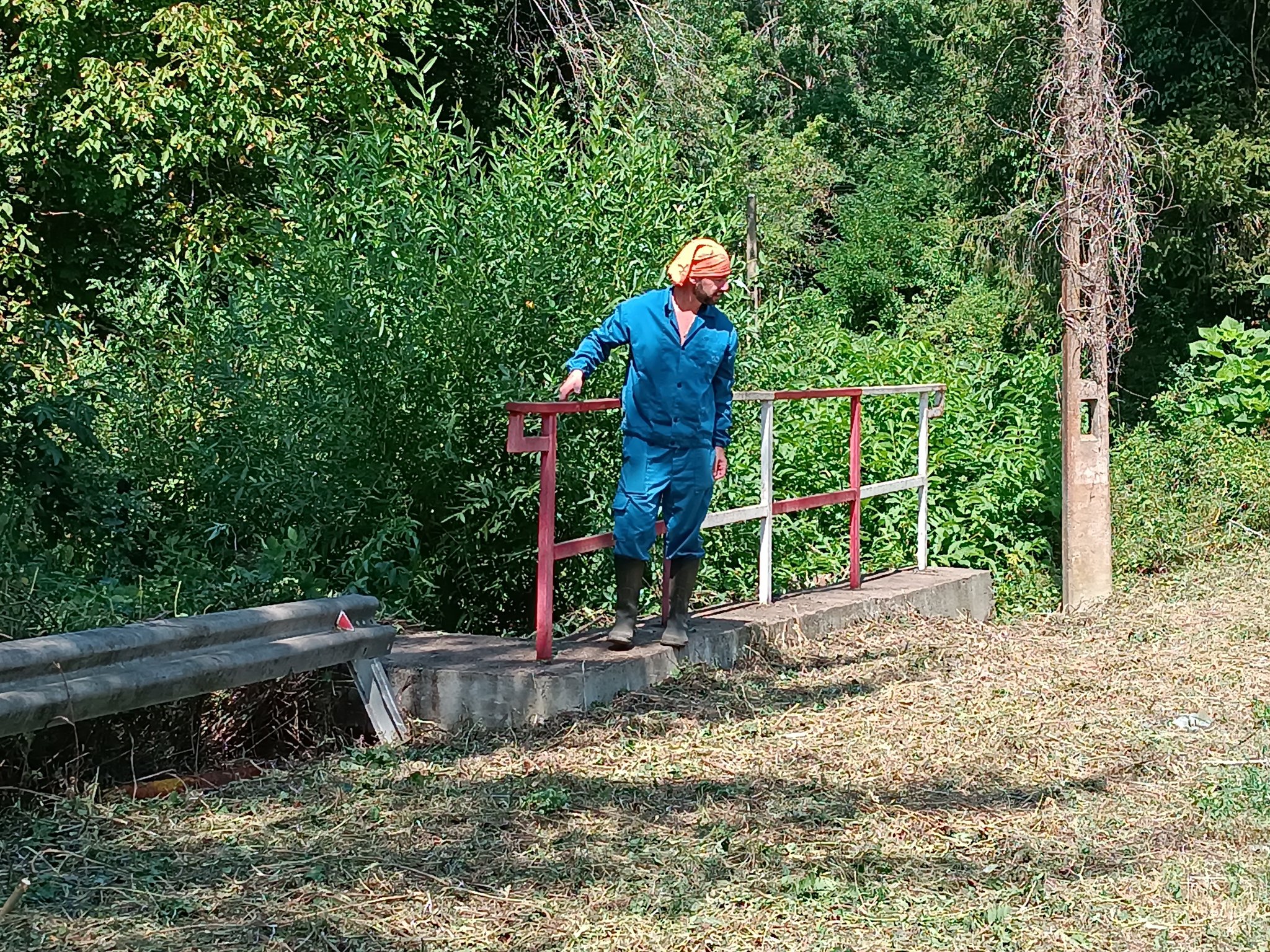Беше необходимо да се почисти растителността, която беше завзела дотолкова моста, че и следа нямаше, че това е мост. А долът под него е много, много дълбок и всякакви нещастни случаи можеха да се сл, учат. След като се очистеха лианите и храсталаците, беше необходимо и перилата да се боядисат по новому.