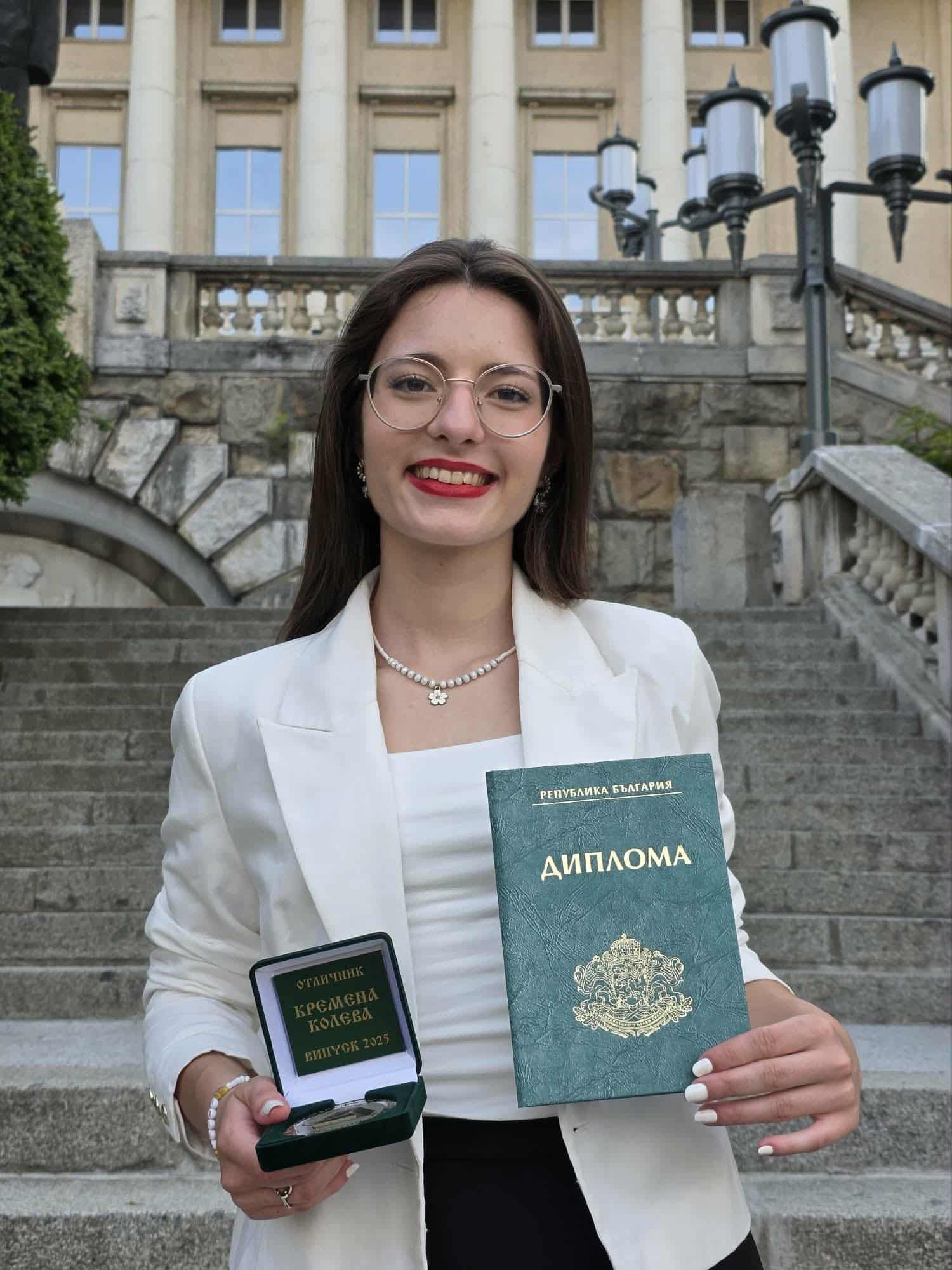 Почетното отличие ще получат и бившите съученици на Кремена от Математическата гимназия – зрелостниците от випуск 2024/2025 – Емил Стефанов, Моника Ръжданова и Магдалена Чамурова. Четиримата са единствените ученици от област Габрово, които на 12 септември ще получат престижната награда.