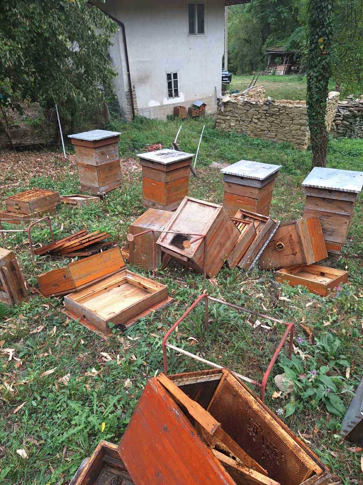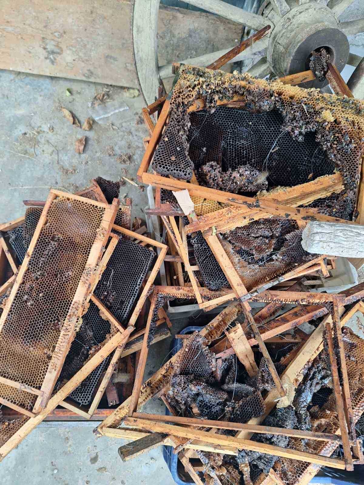 съчувствам и на колежката, мн.жалко за пчелите и ресурсите. Но направиха ми впечатление обаче рамките, много черни и съответно много стари, всъщност те са по опасни и от мечката до някъде. Маса от 10 000 пчели, родени в светли пити ще е равна на 1 кг, в кафяви пити на 0.838 грама, а в тъмни само на 0.671 гр. Такова влошаване качеството на пчелите силно се отразява на медосбора също и на здравето на семействата. За да съберат еднакво количество мед ще трябват два пъти повече пчели, родили се в тъмно кафяви пити и пет пъти повече пчели, родили се в черни пити в сравнение с пчелите родили се в светли пити. Към всичко това на пчелите ще се наложи да вложат повече усилие за отглеждането на една и съща маса пчели. За да изхранят 1 кг пчели в светли пити, кърмачките изразходват 2.5 кг мед, в кафяви 2.9 кг мед, а в тъмни 3.7 кг и повече в още по тъмните както и е в случая. Увеличението на разхода на мед в този случай е свързано с това, че се налага да кърмят по голямо количество, по- дребни пчели, съпоставено към 1 кг жива маса.