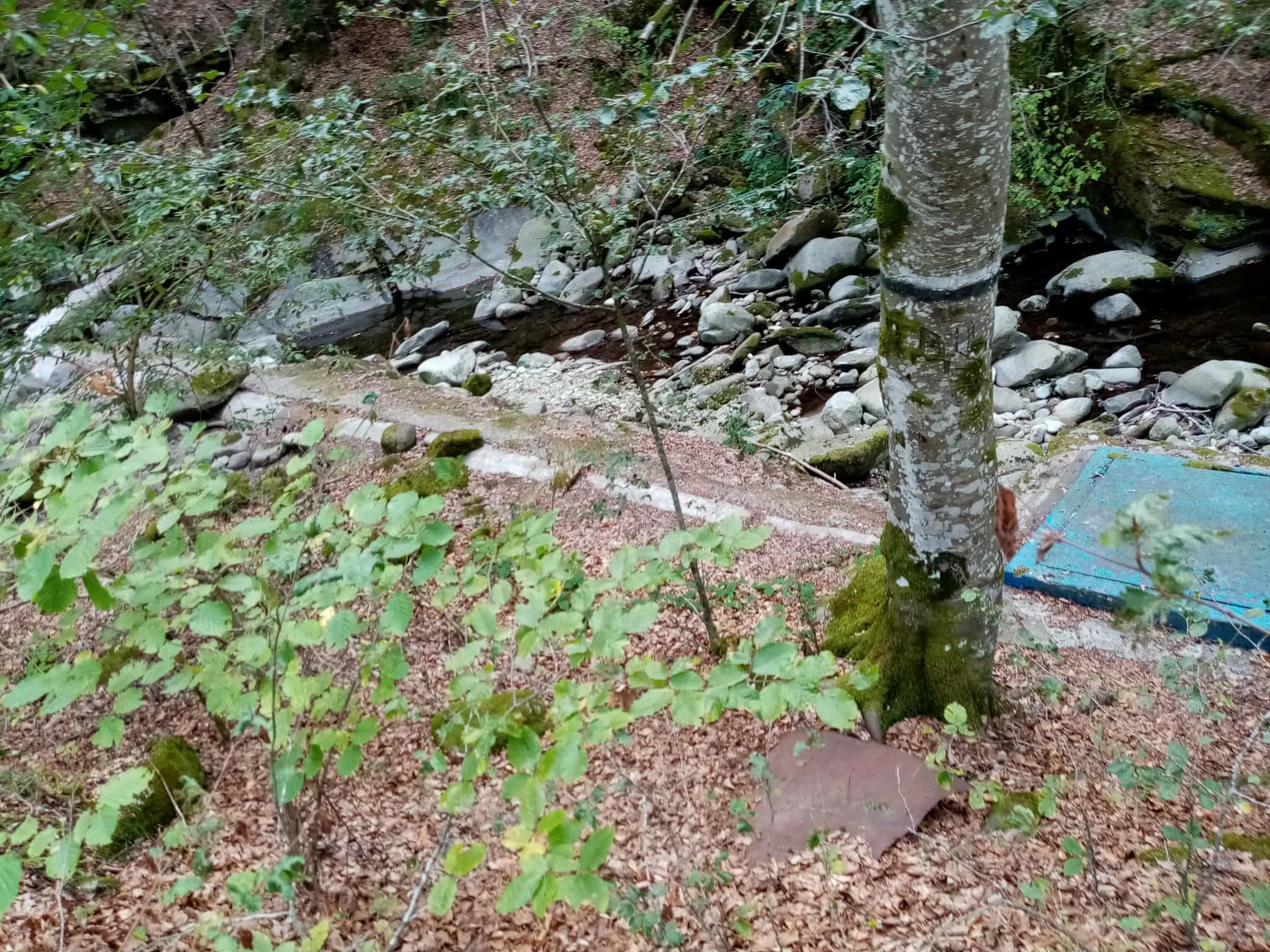 Към края на обиколката на водоизточниците на ПСПВ – с. Стоките пътят ни водеше по дъното на бъдещия язовир. В момента то представлява гъста гора, с огромни дървета и храсти, между които се виждат останки от зидове на къщи и дувари на дворове в селището, чийто жители са били изселени заради строителството на язовира.