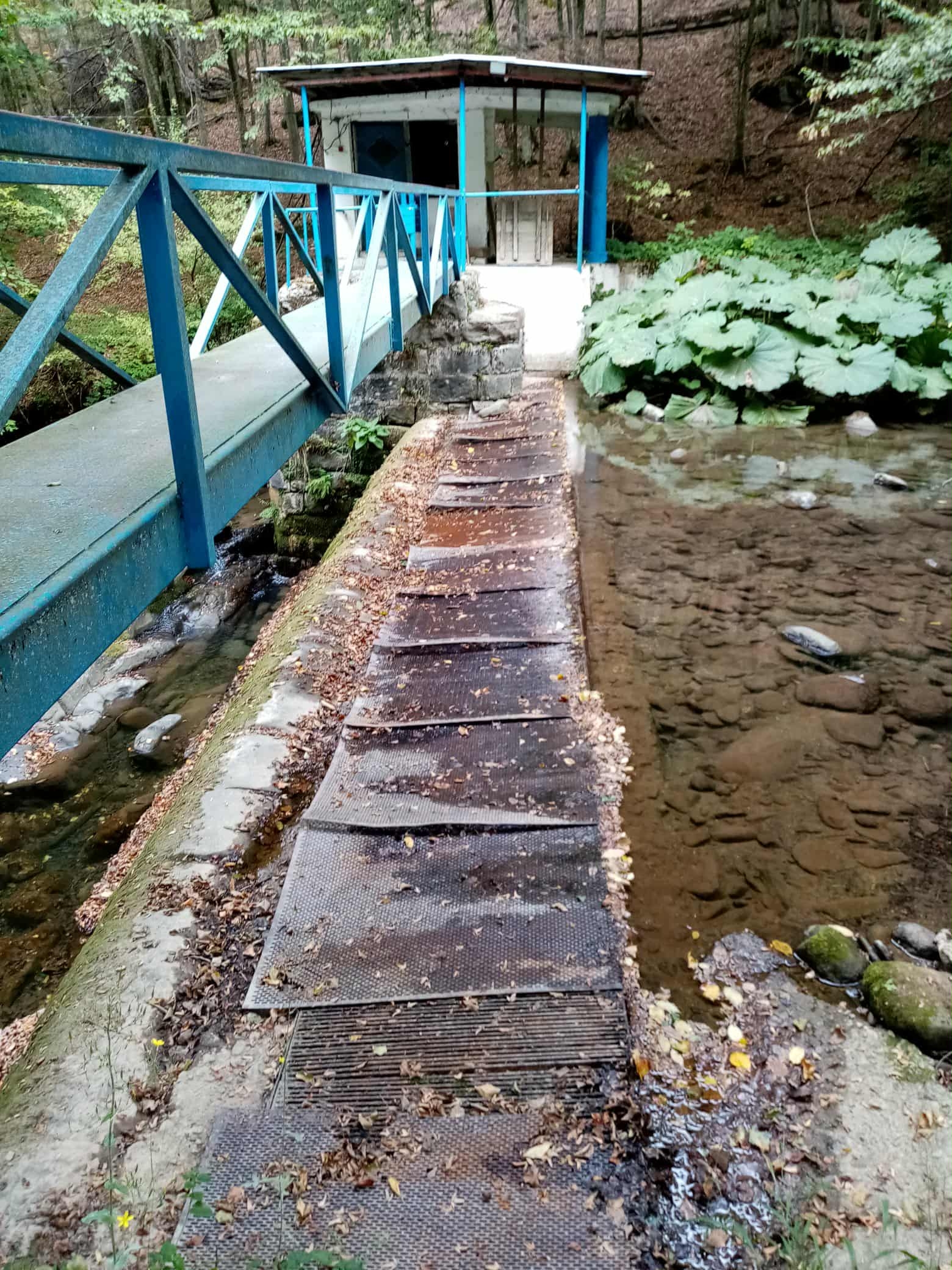 Продължихме към водохващане „Росица“. Реката и тук едвам се движи между камъните на коритото. „Водата преминава през решетките на тръбата. При нормално пълноводие на реката отдолу има един канал, който прихваща водата. Ако е в порядъка на 120-130 л/сек., водата започва да преминава отгоре. Под решетките има един улей, който събира и вкарва водата във водосборната шахта и от там тръгва по тръбите. Освен че е малко количеството на водата, листопадът през есента също създава проблеми за нейното преминаване, затова трябва редовно да се почиства шумата“, обясниха експертите.