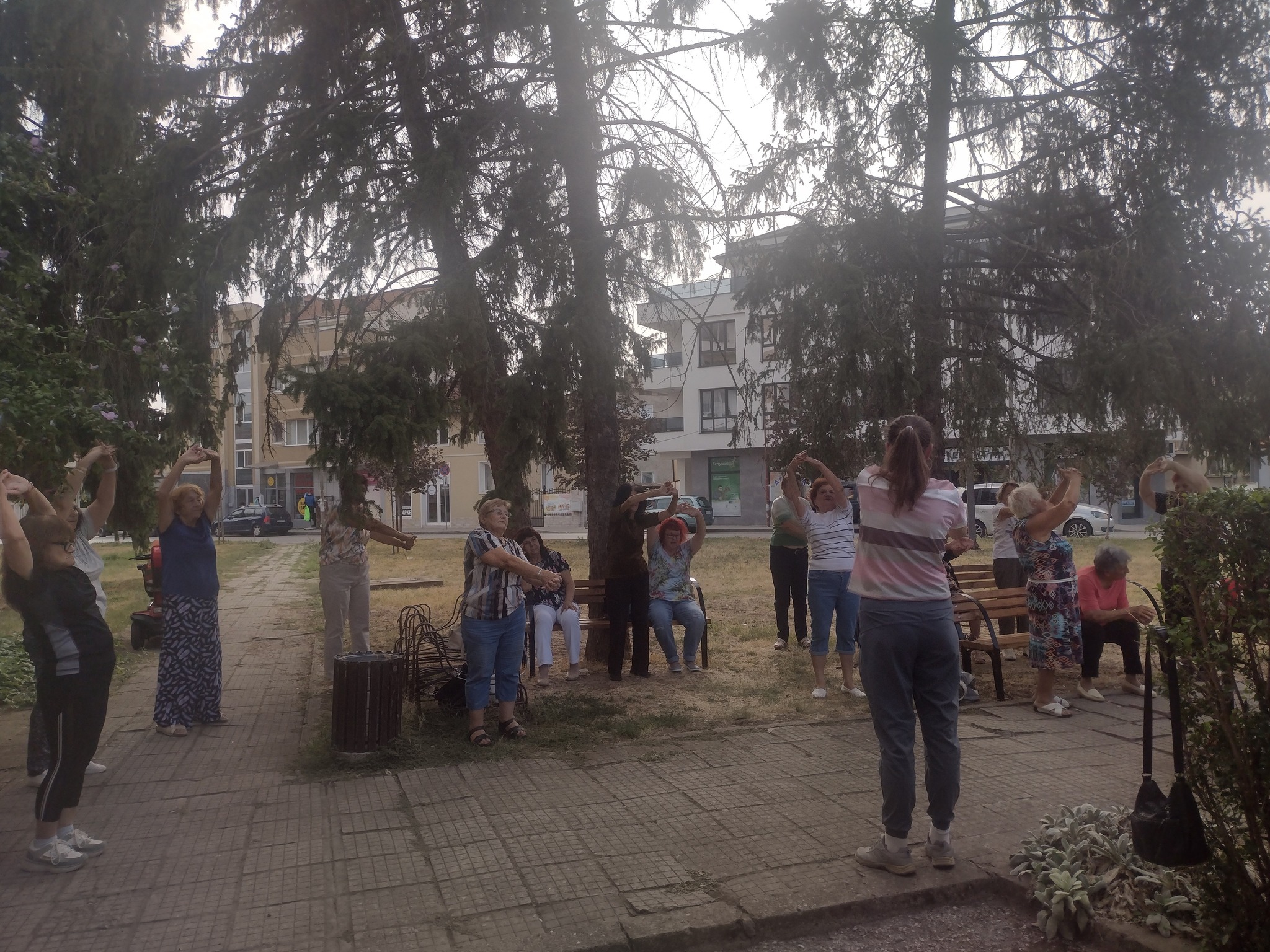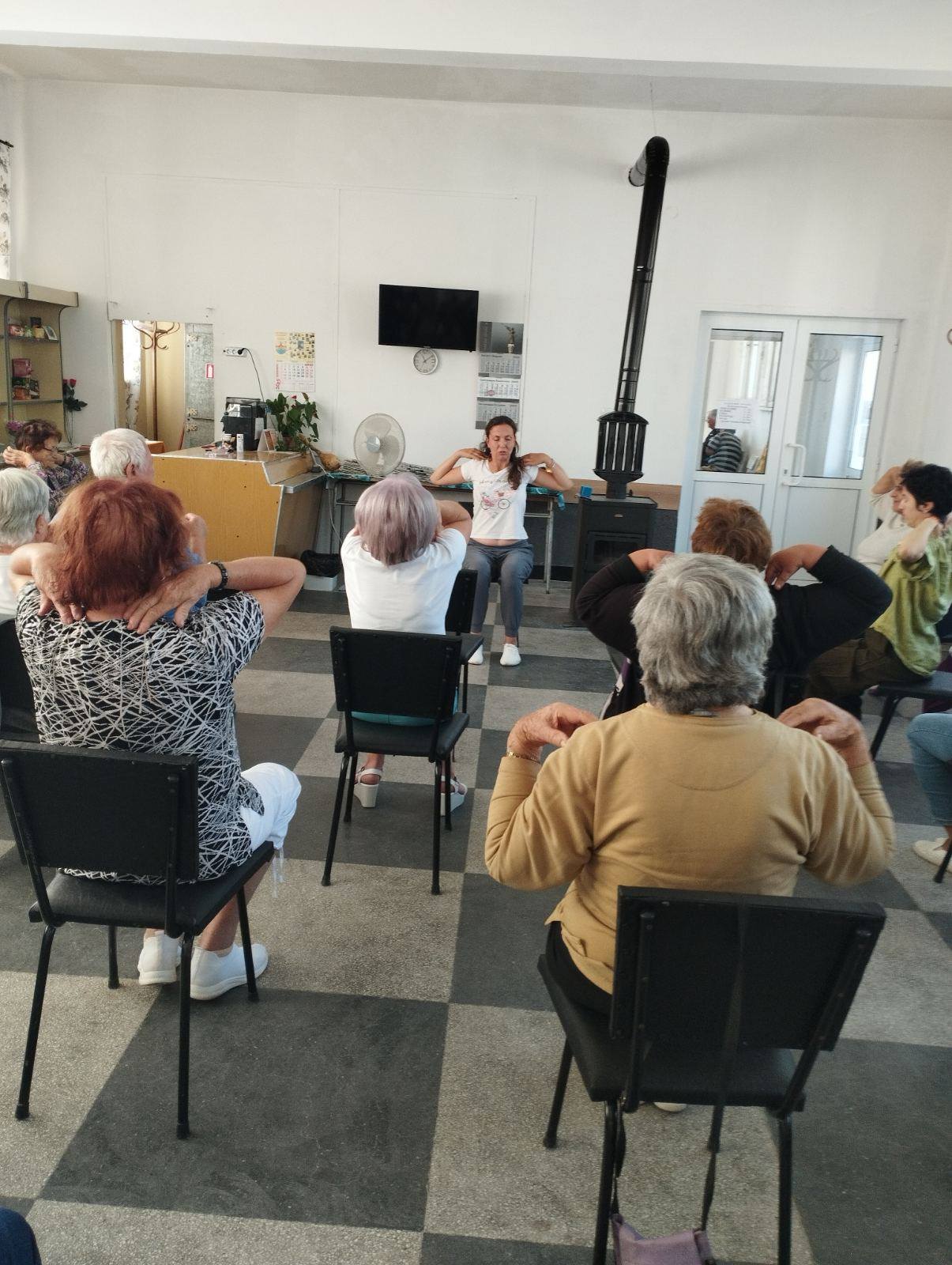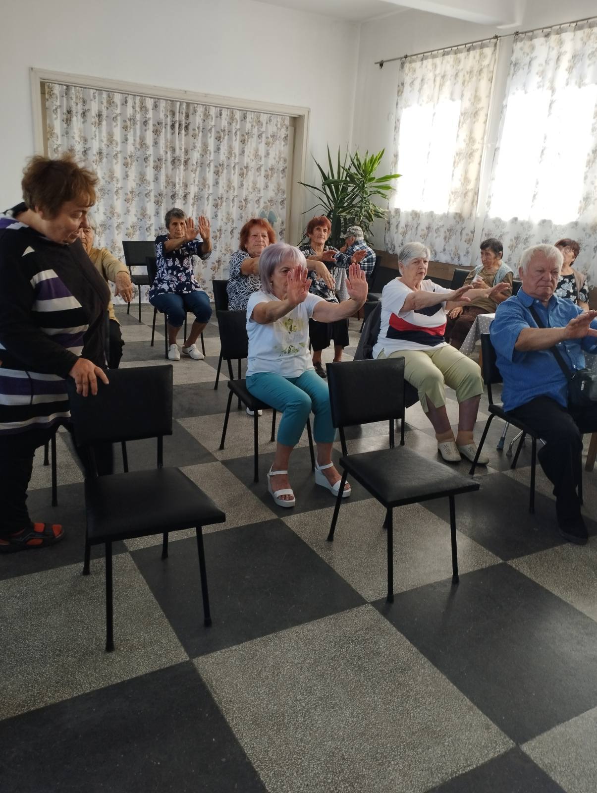 Ваня Йонкова: В началото на годината поканихме в ПК „ЮГ“ лицензиран инструктор по йога и демонстрирахме упражнения от т.н. „йога на стол“. Определено имаше интерес от възрастните хора, което ни даде основание да търсим възможности за продължително финансиране на тази дейност. Защото не става въпрос само за еднократно раздвижване, а за повторяемост на упражненията и извличане на максимални ползи за физическото и психическо здраве на възрастните хора.
