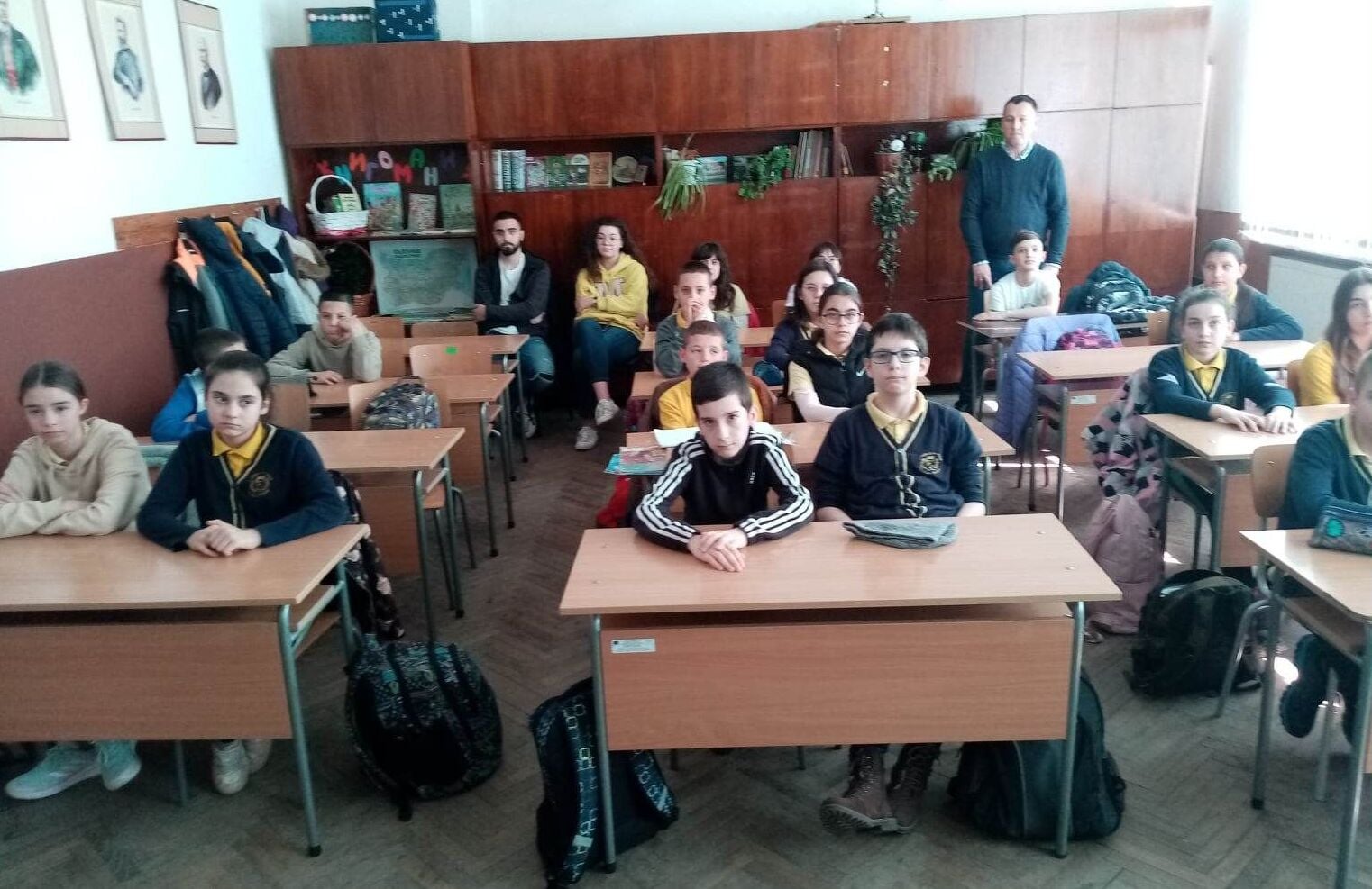 Снимка проф.д.н. Венелин Терзиев на среща с ученици от ОУ "Стефан Пешев" Севлиево