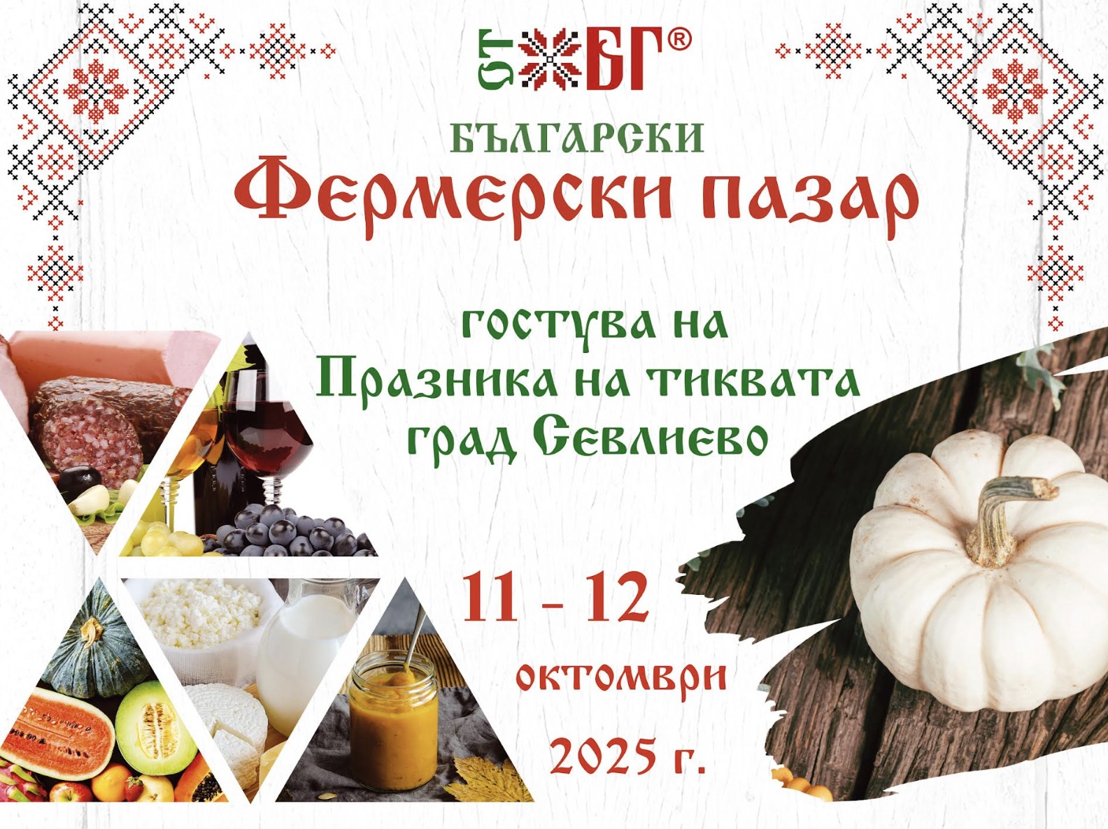 Очакваме ви на 11 и 12 октомври в центъра на Севлиево, за да споделим празничната атмосфера на Празника на тиквата и богатството на Българския фермерски пазар.