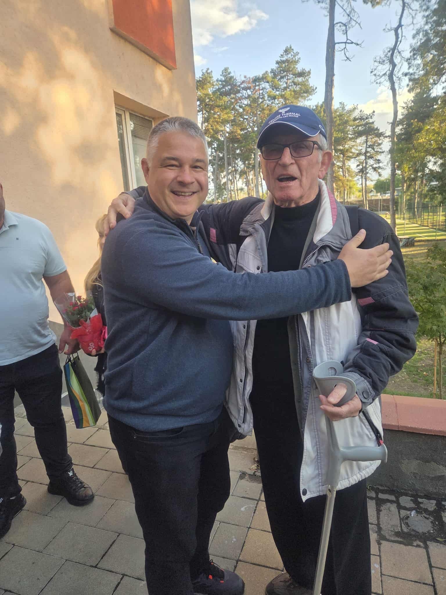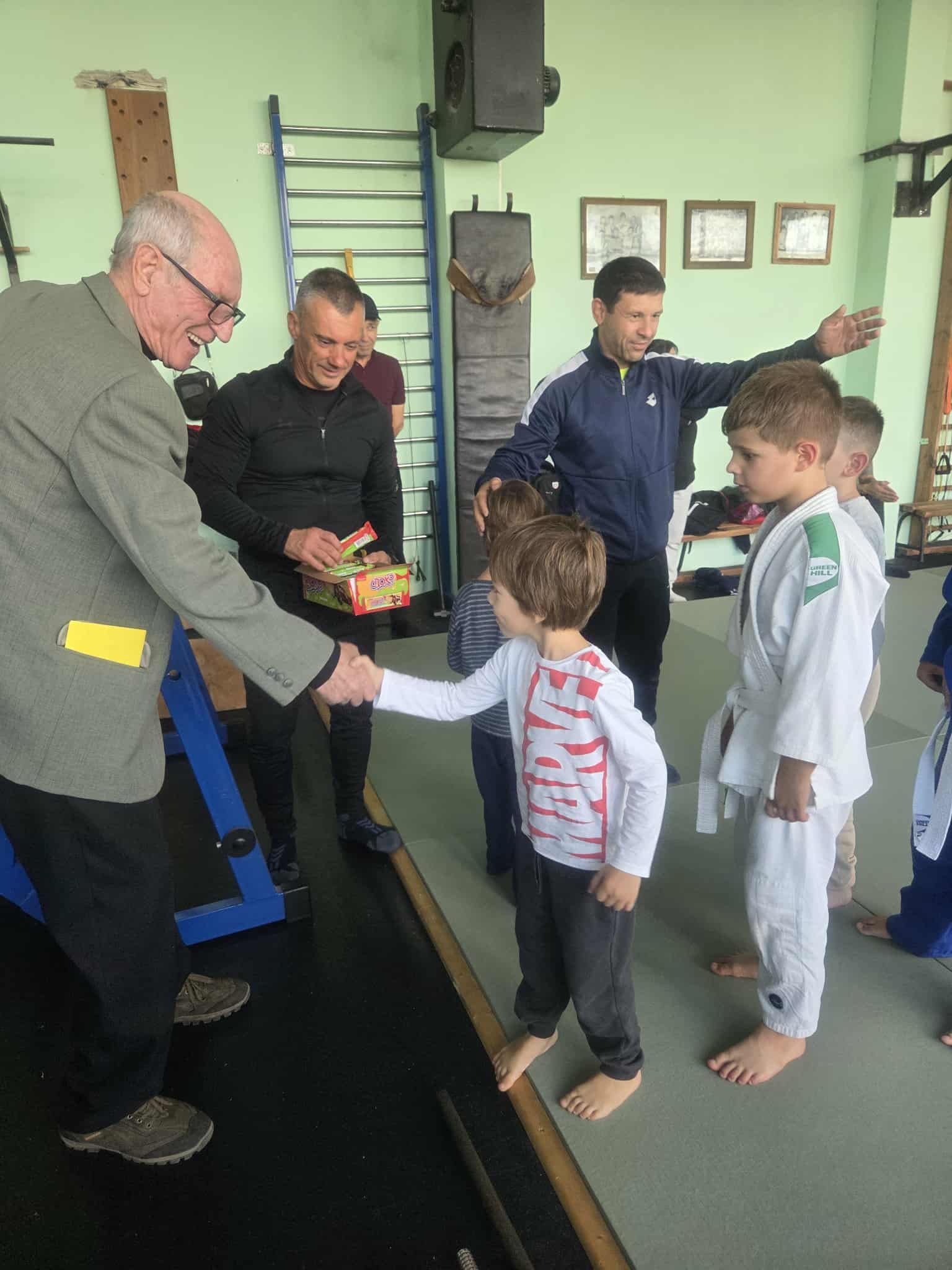 „Стоя там, още не сте ме забравили“, извика Досьо Досев, сочейки към стената със снимки, след като влезе в залата на клуба по самбо и джудо. А там бе животът му – на черно-бели избелели снимки, той, сред шампиони и носители на златни, сребърни и бронзови медали от Държавни, Балкански, Европейски и Световни първенства. „Тежа 80 кг, висок съм 1.80 м и днес ставам на 80 години. Това съм аз и душата ми се пълни като виждам тази зала пълна. Тук са и моите момчета. Най-голяма е радостта ми обаче, че вие, деца, вървите по стъпките на тези батковци, които отдавна не се състезават, но са сред нас. Какви искате да бъдете и дали искате да сте шампиони, зависи от вас и вашите мечти“, каза със сълзи на очи на децата, изпълнили залата на клуба. „В живота има върхове, но и падения. В такива моменти все съм повтарял, че спокойствието е важно. Затова ще почерпя децата с вафли „Споко“.